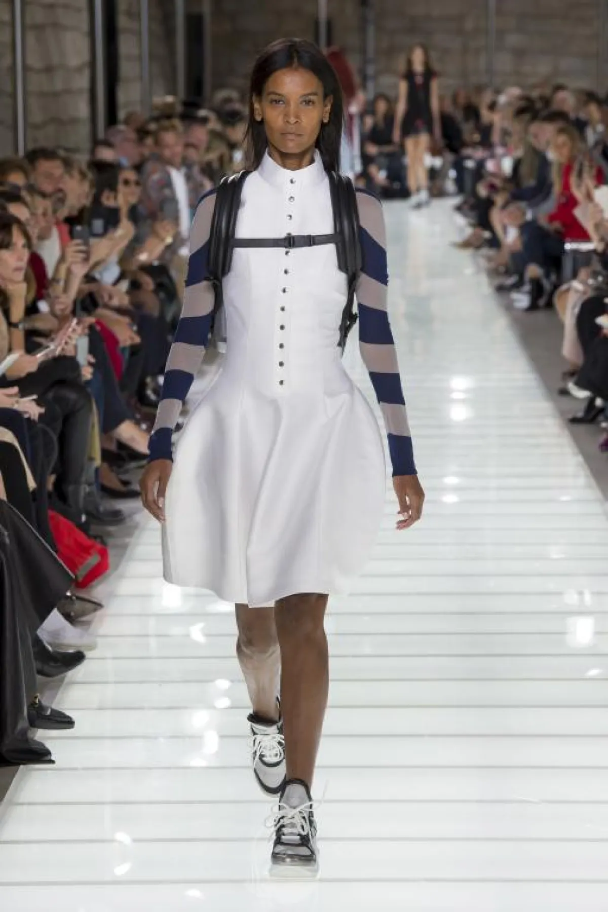 من جهته عمل نيكولا غيسكيير Nicolas Ghesquière المدير الإبداعي لدار لويس فويتون Louis Vuitton على أن يبقى عرضة في الذاكرة فقد كانت الأزياء التي قدمّها بمثابة حوار ما بين الماضي والحاضر، حيث استعان هذا المصمّم بعدد كبير من العناصر الجمالية التي كانت تتميز بها أزياء ملكات وأميرات الطبقات الأرستقراطية في العصور الوسطى ووظفها بطريقة عصرية وشبابية. أزياء عرضه التي غلبت عليها الشورتات القصيرة صنعت من الحرير، نسّقها بجاكتات من قماش البروكار الفاخر وأخرى طرزت حوافها بالترتر والخيوط الذهبية تدلت من أطراف أكمامها ربطات تذكر بأكمام معاطف الملوك والأمراء. أما الأزياء الأخرى فقد تنوّعت ما بين فساتين الكوكتيل ذات القصات الضيقة من الأعلى والمنتفخة من الأسفل والبنطالونات الجلدية التي نسقها ببلوزات طويلة ومطرزة.