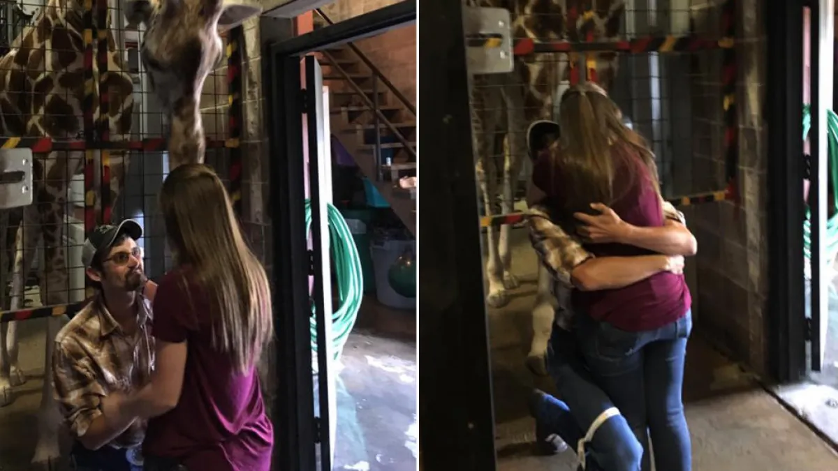 قاموا بوضع خاتم الخطوبة على حبلٍ وربطوه حول رقبة الزرافة