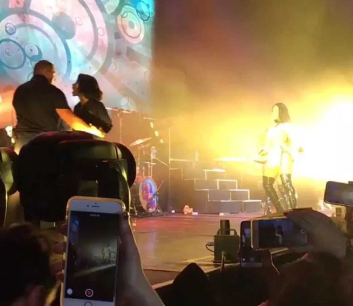 : Becky running on stage to help Dinah then being snatched by security. #PSATourArgentina pic.twitter.com/BMCpGGYt9o