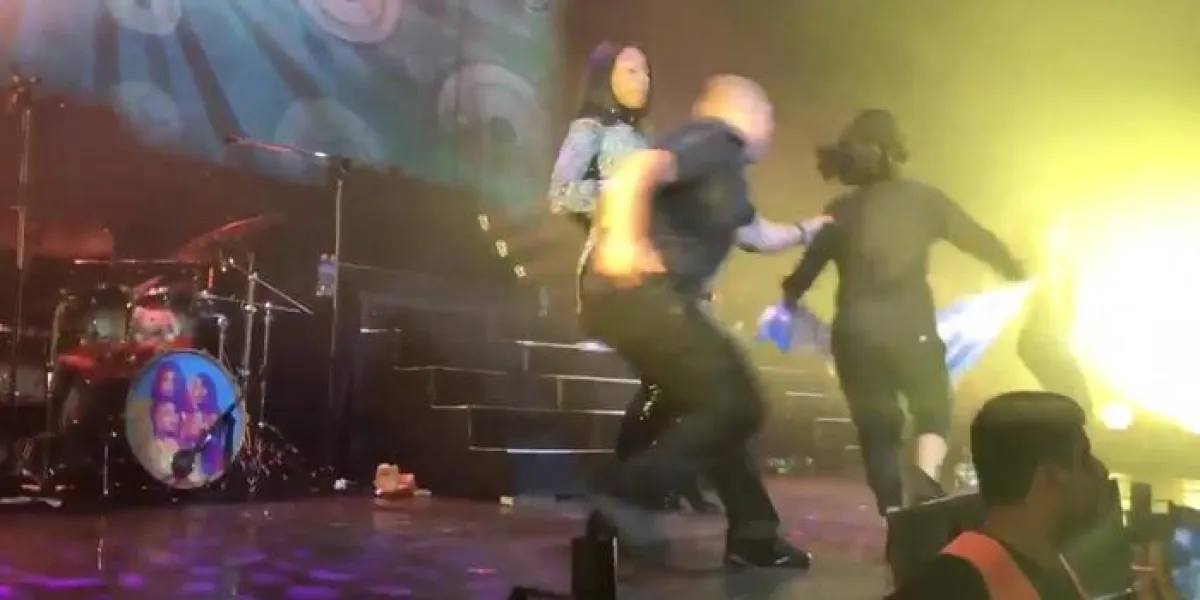 وفي التفاصيل، أثناء أداء الفرقة إحدى أغنياتها، اقتحمت المسرح شابة حاملة علم الأرجنتين، ولحق بها رجل أمن اصطحبها بعيدًا، ظنًّا منه أنها قادمة من بين صفوف جمهور الحفل، ليتضح أنها لم تكن سوى المغنية بيكي جي Becky G ، صاحبة الفقرة الافتتاحية بالعرض.