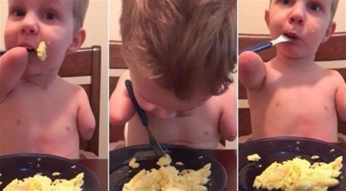 حظي مقطع فيديو تناقله رواد على وسائل التواصل الاجتماعي يظهر طفلاً بريطانياً بلا ذراعين يتقن تناول طعامه بالشوكة، على نسبة مشاهدات عالية جداً، وذلك بعد نشره بساعات قليلة فقط.