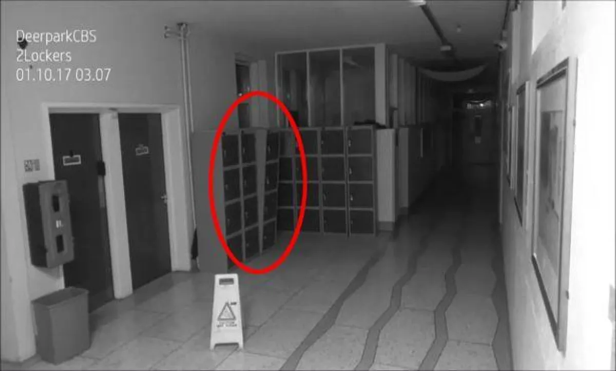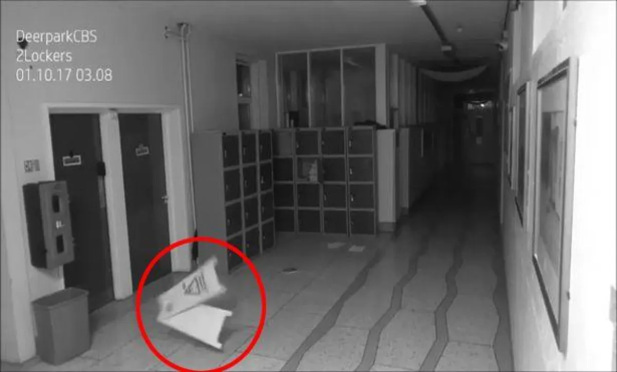 نشر موقع "ديلي ميرور" فيديو أثار الرعب بعد بثّه على موقع التواصل الاجتماعي، لمشاهد غريبة ليلًا سجلتها كاميرا مثبّته داخل أروقة مدرسة "ديربارك كبس" بمدينة كورك بإيرلندا، حيث بدأت اللقطات التي أثارت الرعب في المدينة، بضجيج ضخم ووميض غريب يأتي من وراء باب مغلق لإحدى الغرف، بعدها بلحظات تهتز بقوة خزائن المدرسة بشكل مثير، ثم يُفتح باب إحدى الخزائن وتتناثر محتوياتها أرضًا بين الأروقة، بينما تتطاير بعض الأشياء وترتطم بالأرض وكأنّ شخصًا يقوم بذلك، رغم عدم وجود أي شخص فى أروقة المدرسة وقتها.