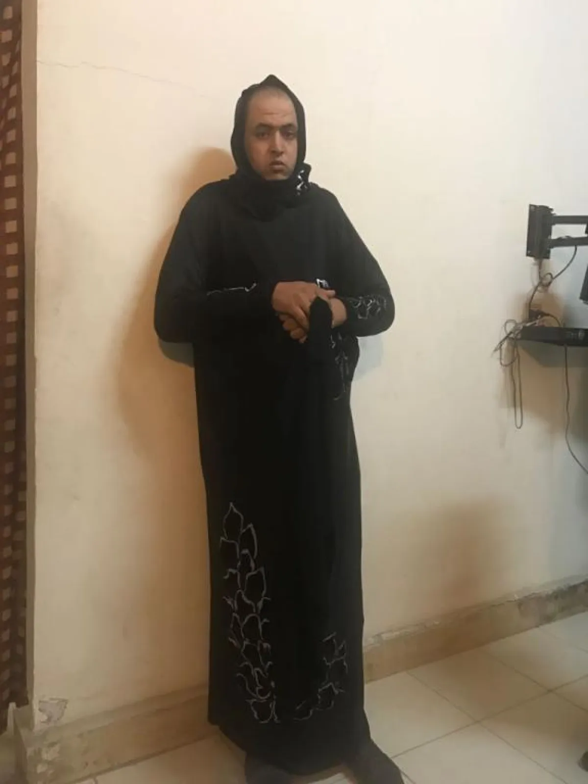 وتمكن الأمن من ضبطه وتبين أنه «تمام ع»، 25 سنة، طالب، مرتديًا ملابس نسائية «عباءة ونقاب» وبحوزته سكين، ومفك وبنسة و2 جوانتي أبيض، وبمواجهته اعترف أنه قصد التخفي تمهيداً لارتكاب واقعة سرقة من داخل محطة وقود «توتال» التي كان يعمل فيها موظف توريد إيرادات بمحطة الوقود وعلمه باحتفاظهم بمبالغ مالية كبيرة «إيرادات المحطة»، وفي سبيل ذلك قام بالتخفي في الزي النسائي؛ ليتمكن من مغافلة العاملين، والدخول دون معرفة شخصيته وسرقة الإيرادات من داخل الخزينة باستخدام المفاتيح الأصلية، التي يتم التحفظ عليها بذات مكان وجود الخزينة، وعلل ذلك لسابقة قيامه بالتوقيع على إيصال أمانة لصالح المحطة بمبلغ 100 ألف جنيه وخشية ترك العمل ومطالبته بالمبلغ.