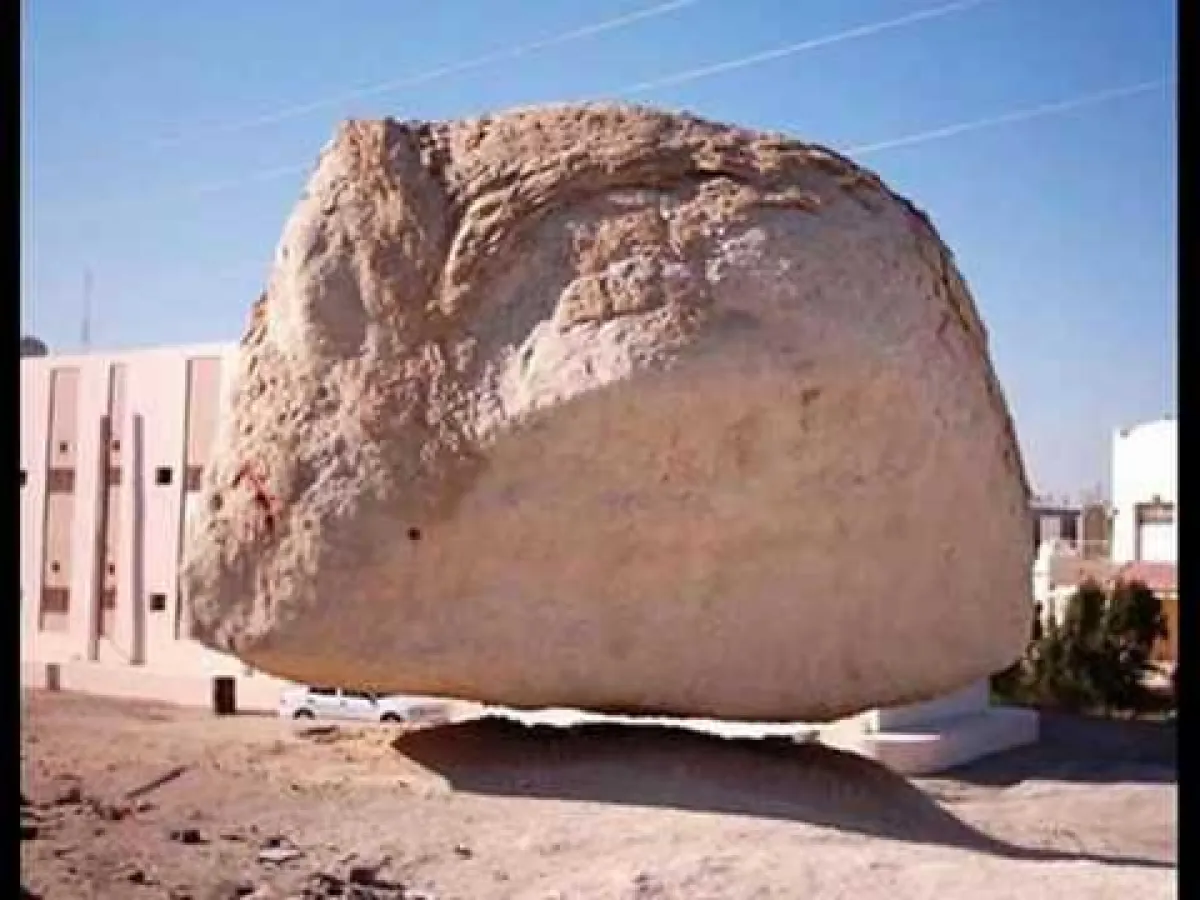 الصخرة وهي تربض على 3 حصيات صغيرة