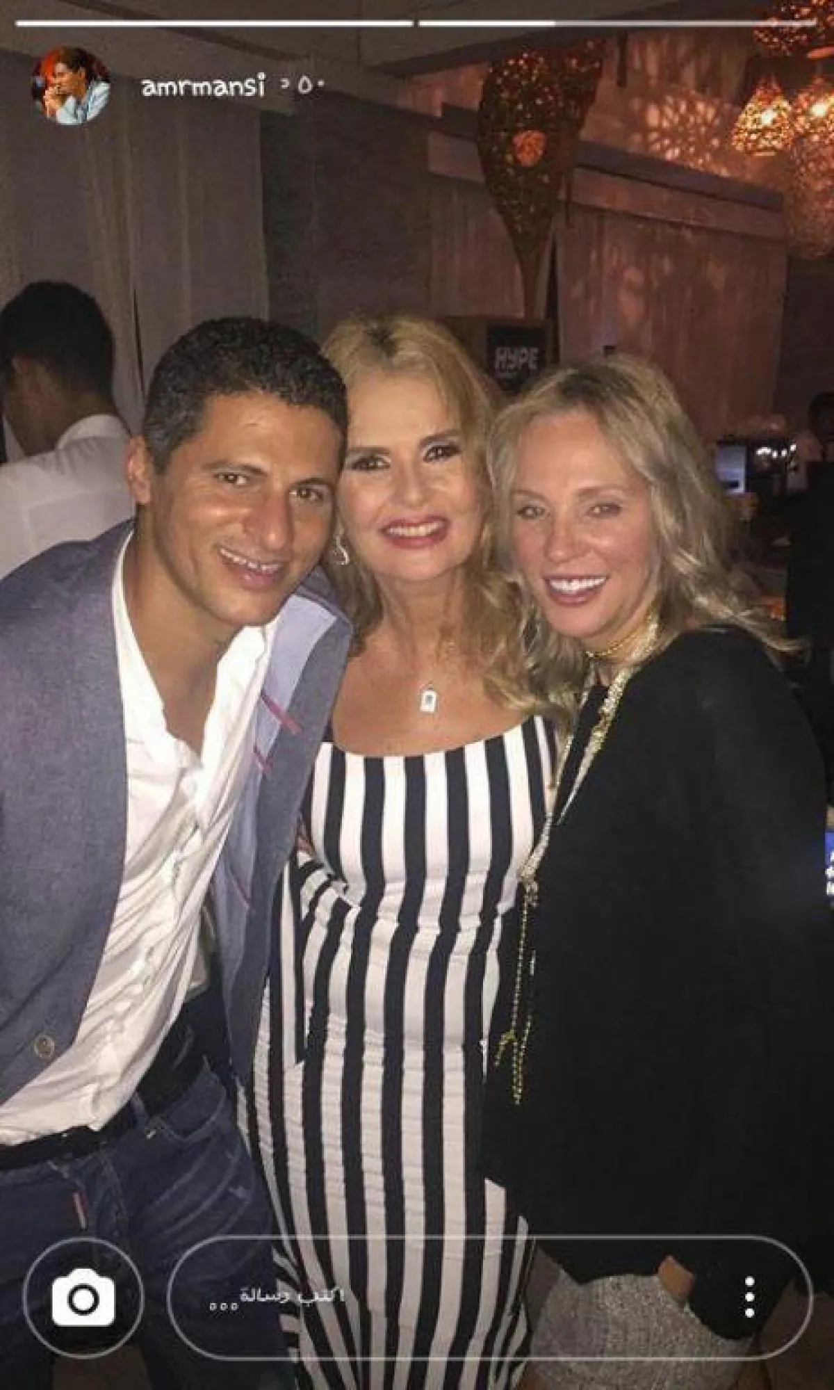 هبة نشرت الصور عبر حساب خاص بموقع انستقرام وعلقت عليها قائلة: أسعد عيد ميلاد للأسطورة الوحيد عمرو دياب، لملايين السنين، مع دندون، وتمت مشاركة دينا الشربيني وعمرو دياب في التعليق.