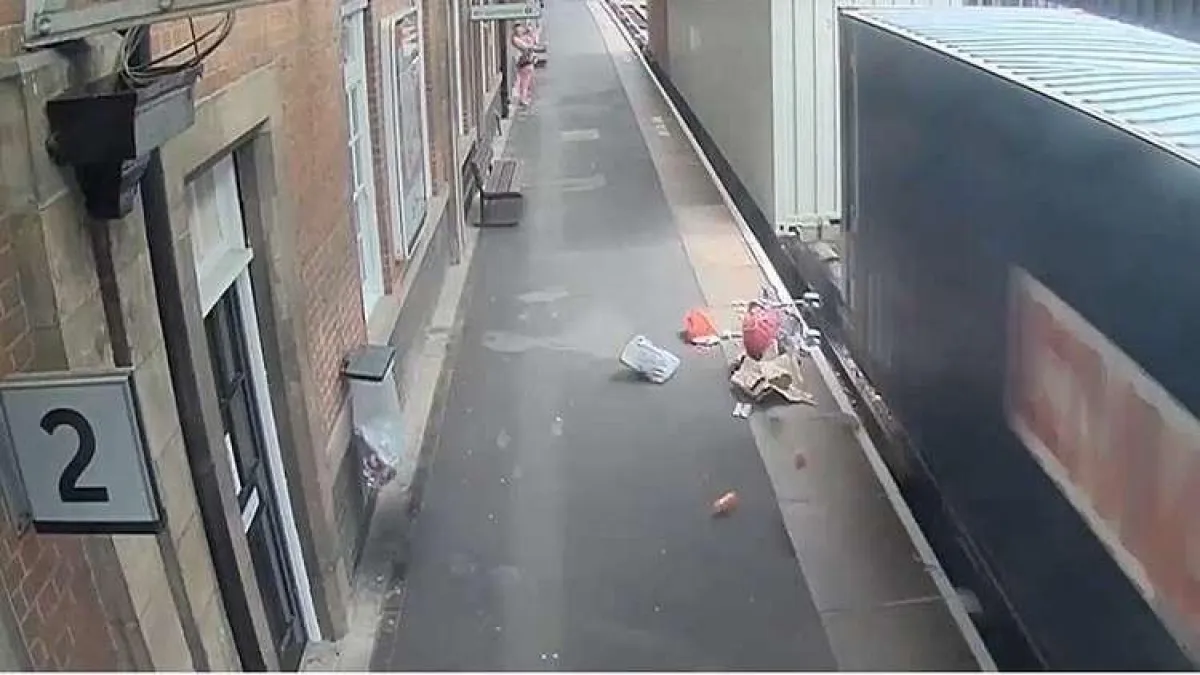وتداولت مواقع التواصل الإجتماعي شريط فيديو التقطته إحدى الكاميرات الموجودة بمحطة نونيتون للسكك الحديدية في بريطانيا، وتظهر فيه إحدى المسافرات تحمل طفلها الصغير بين يديها في اللحظة التي تنزلق فيها عربة الطفل، التي تحتوي على حقيبة وبعض الأغراض باتجاه السكة الحديدية ليصدمها قطار شحن كان يتحرك بسرعة كبيرة.