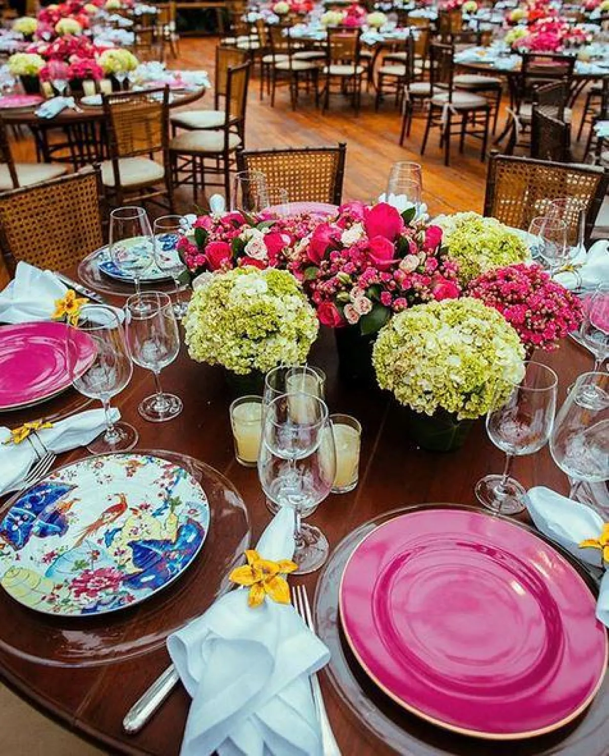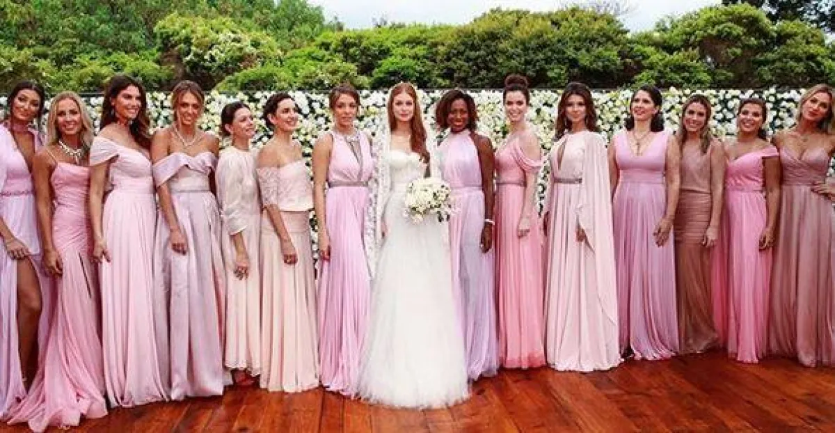 ونشرت العروس صورها برفقة وصيفات الزفاف وهنّ يرتدين فساتين باللون الزهري تتشابه مع ديكور الحفل.
