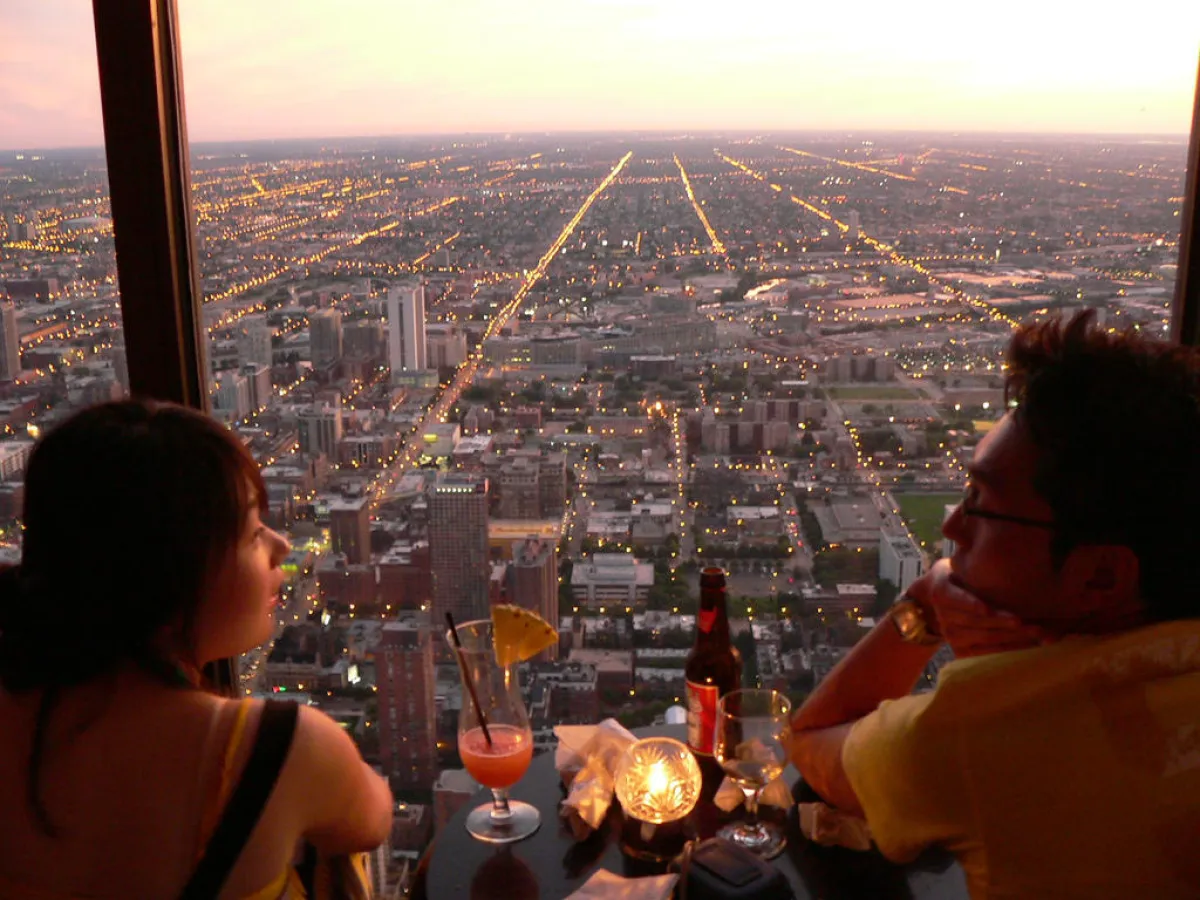 بالمقابل، يُنصح بالاحتفاظ بالمال، والجلوس في مقصف "جون جونكوك" في الطبقة 95، حيث لا يتعدّى سعر الكوكتيل هناك، 15 دولارًا أمريكيًّا، مع اختيار مقعد بالقرب من أحد النوافذ الممتدَّة من الأرض إلى السقف، إذا لم يكن المكان مزدحمًا. وهناك، يحظى الزائر بفرصة رؤية أربع ولايات، وهي: "إلينوي" و"يسكونسن" و"إنديانا"، و"ميتشيغن".