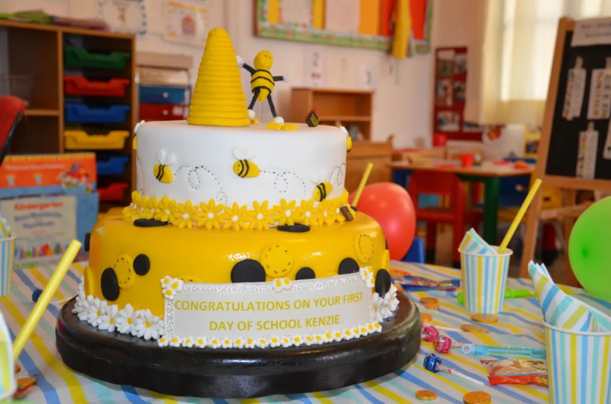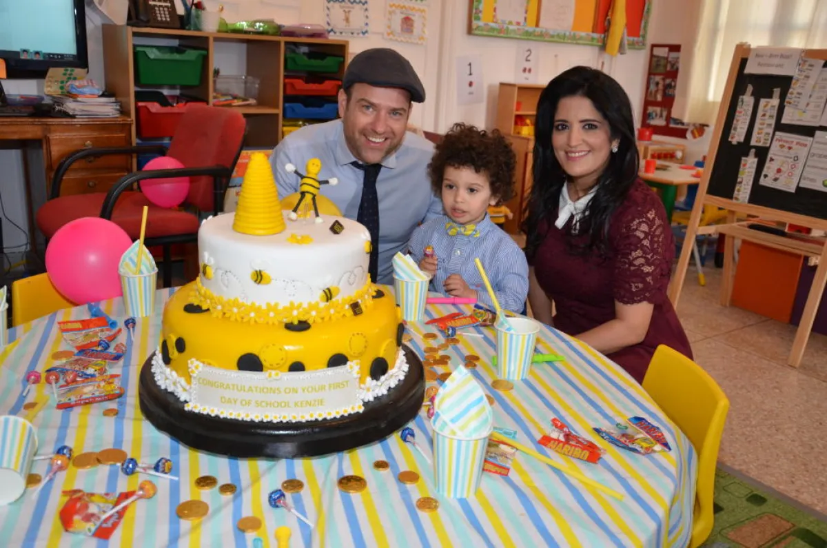 - معظم روضات الأطفال تنصح بأن يبقى الآباء في الجلسات القليلة الأولى مع أولادهم، لكن بهذه المدرسة لديهم قواعد مختلفة، في أول أسبوع تركنا كنزي لمدة ثلاث ساعات فقط ، كل صباح حتي يستأنس ويشعر بالانتماء والاستقرار .