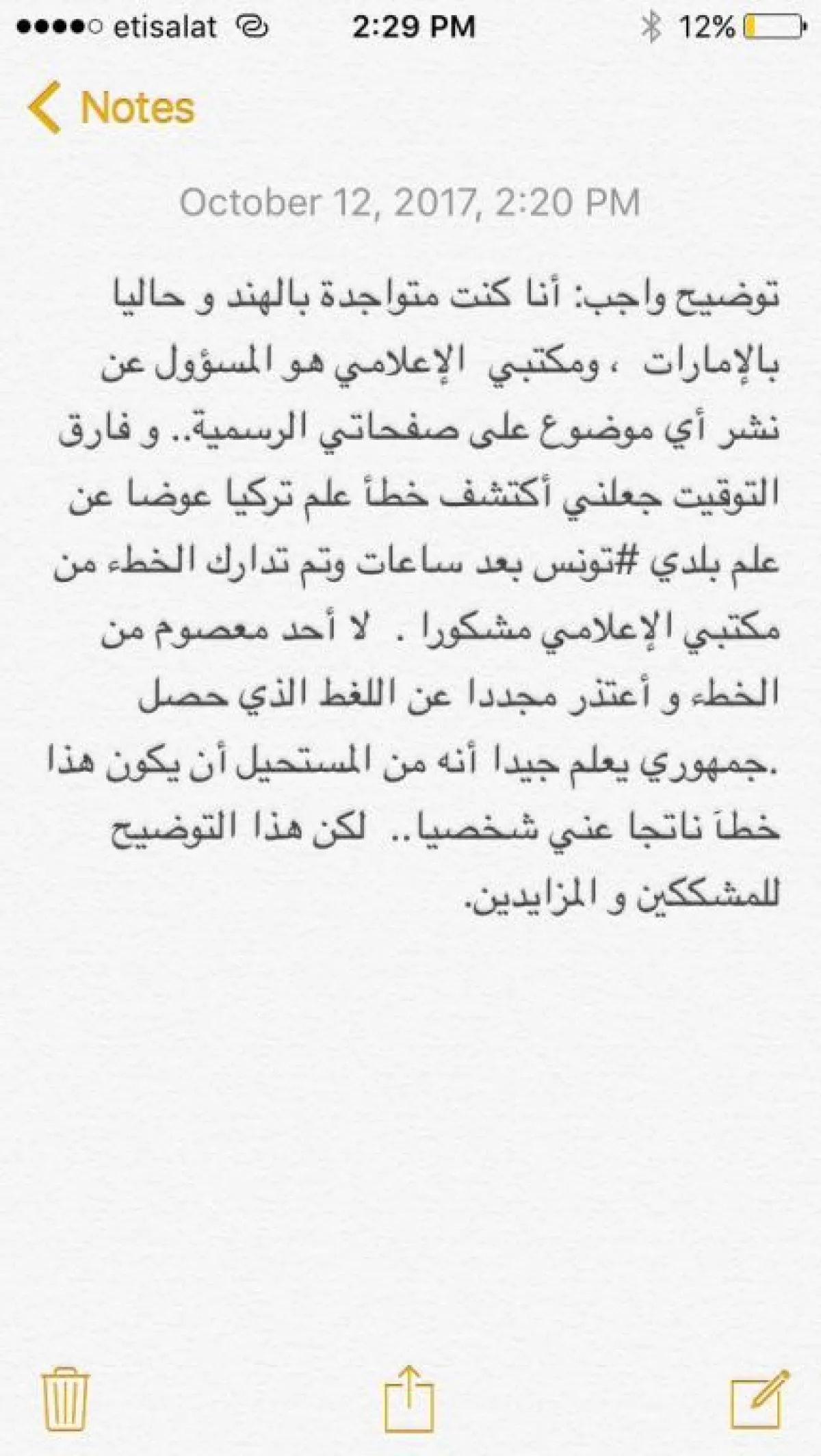 وأضافت أن فارق التّوقيت جعلها تكتشف خطأ علم تركيا عوض علم بلادها تونس بعد ساعات، مؤكّدة أنّه تمّ تدارك الخطأ من مكتبها الإعلامي الذّي شكرته.
