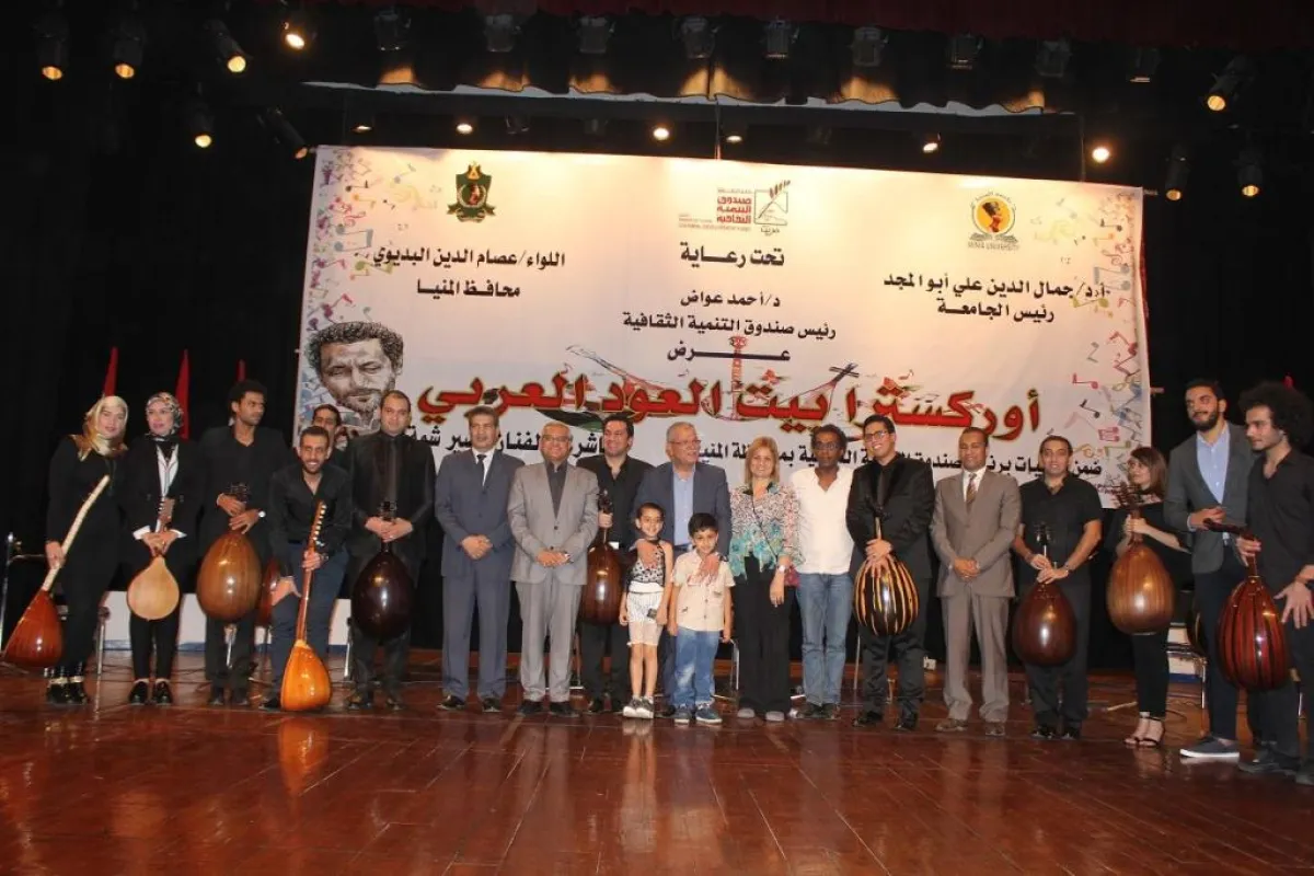 احتفل اللواء عصام البديوي محافظ المنيا، والدكتور جمال الدين أبو المجد رئيس جامعة المنيا، والدكتور أحمد عواض رئيس قطاع صندوق التنمية الثقافية، بالعرض الموسيقي الذي قدمته أوركسترا بيت العود العربي بإشراف الفنان نصير شمة، على مسرح جامعة المنيا.