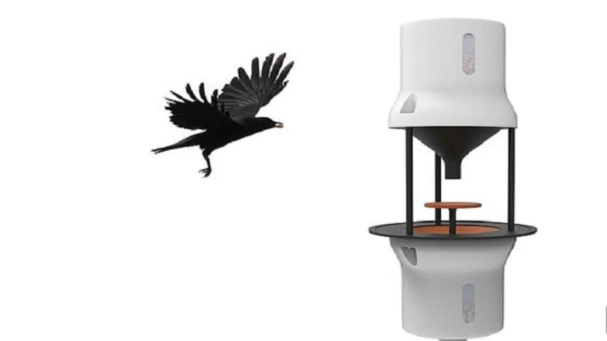 وتقوم الكاميرا المطورة بالتعرف على العقب، ومن ثم يُطلق الجهاز قطعة من الطعام كمكافأة للغراب.