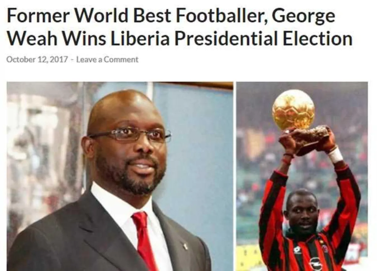 لا تنفك الرياضة عموماً، وكرة القدم على وجه الخصوص، من إبهار العالم بأحداثها ونجومها إن كان داخل الملاعب الخضراء أو خارجها، وآخر هذه المفاجئات النجم الليبيري وأحد أهم الأسماء في كرة القدم "جورج واياه"، الذي فاز مؤخراً برئاسة بلاده "ليبيريا" بعد ترشحه للمرة الثاني وخوضه الإنتخابات الرئاسية، حيث حصد أغلبية ساحقة لأصوات أبناء شعبه، وهذا هو الترشح الثاني لـ"واياه".