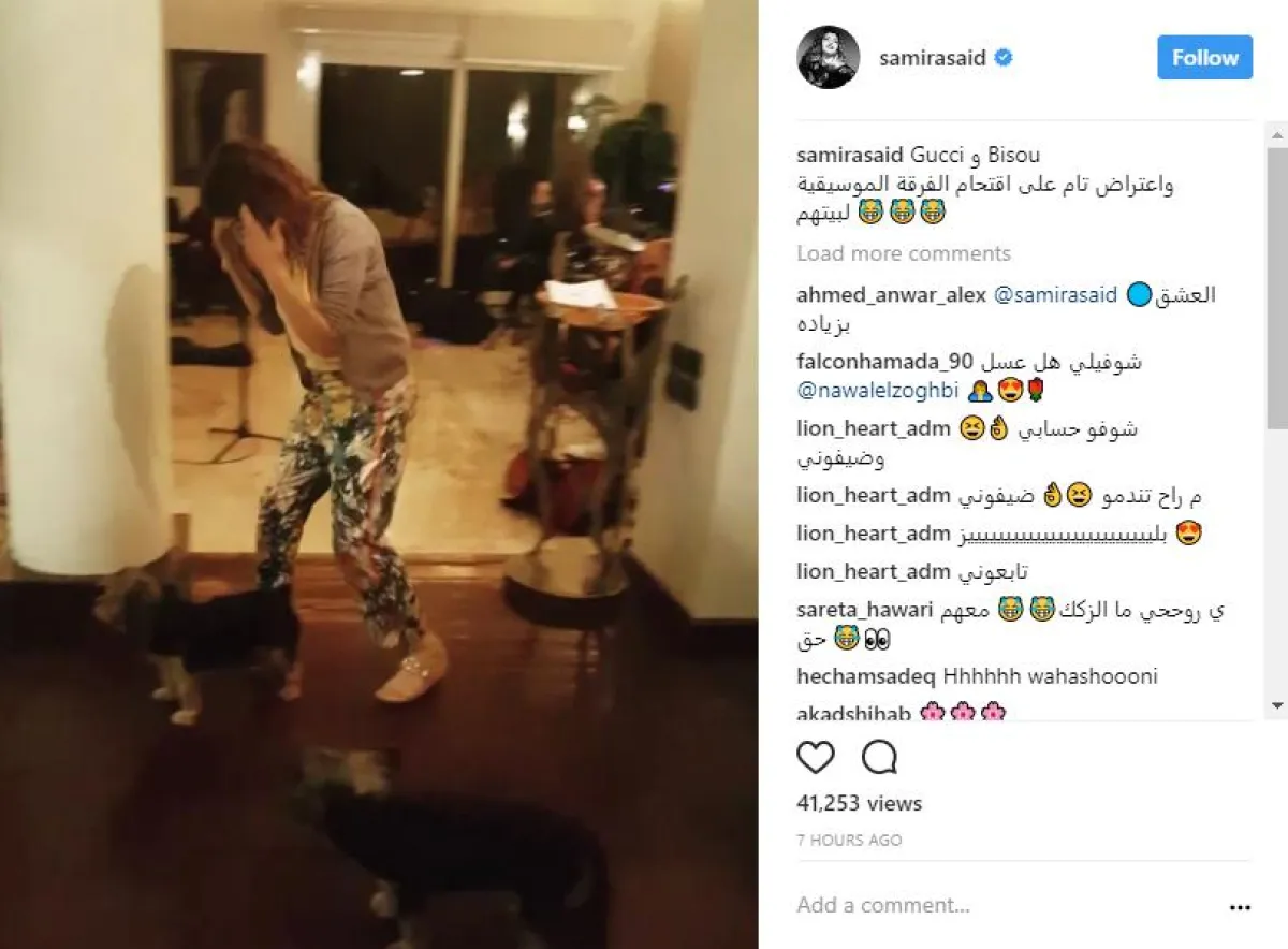 نشرت الفنانة سميرة سعيد عبر حسابها على موقع انستقرام، فيديو لاعتراض كلبيها على وجود الفرقة الموسيقية الخاصة بها، واستمرارهما في النباح طوال إجراء البروفات، وعلقت الفنانة الديفا على الفيديو، قائلة: Gucci و Bisou واعتراض تام على اقتحام الفرقة الموسيقية للبيت.