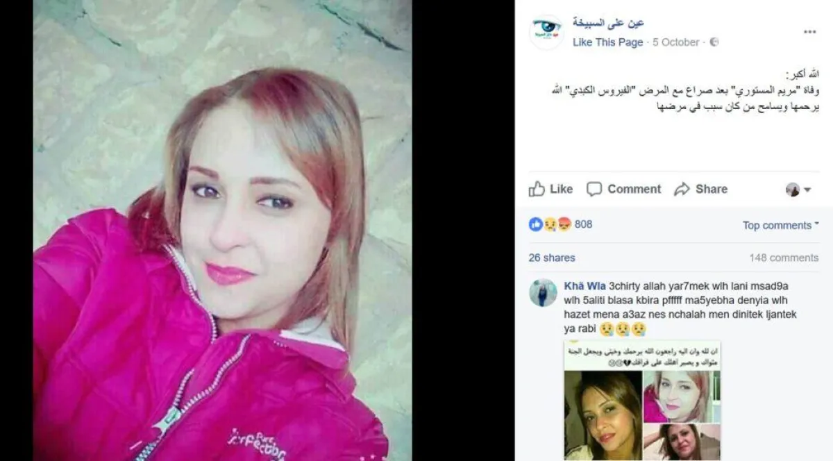 واضافت محامية الزوجة في تصريح لموقع "هافنغتون بوست" العربي، أن أهل الزوجة علموا بحالتها وقاموا بنقلها إلى المستشفى، حيث صدموا بخبر إصابتها بالتهاب الكبد الفيروسي. وتبين أن السبب عدوى انتقلت إليها من الزوج أصابتها بحالة هستيرية، ثم دخلت في غيبوبة لمدة 10 أيام فارقت بعدها الحياة. وأثارت القصة جدلاً كبيراً في أوساط التونسيين. وقال والد مريم إن الزوج تلقى تحذيرات تفيد بأن مرضه معد وخطر وتبلغه بضرورة إعلام زوجته بالأمر، لكنه لم يفعل وبحسب التحقيقات في القضية تبين أن الزوج عندما أراد العقد على مريم استخدم شهادة طبية مزورة.