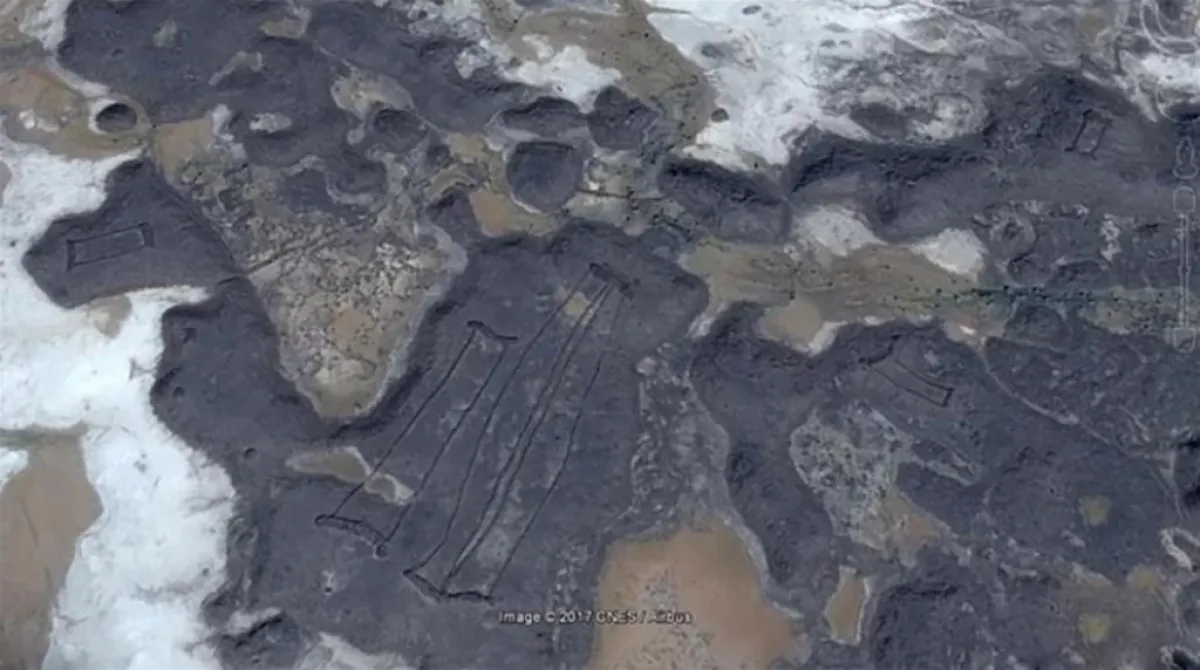 وظهرت في البحث الجديد صور لتلك النقوش الحجرية التي بدت وكأنها إحدى بوابات الحدائق والملاعب التي كانت منتشرة في حقب زمانية قديمة، ويصل طولها إلى 13 متراً، وتأتي بأشكال وأحجام مختلفة.