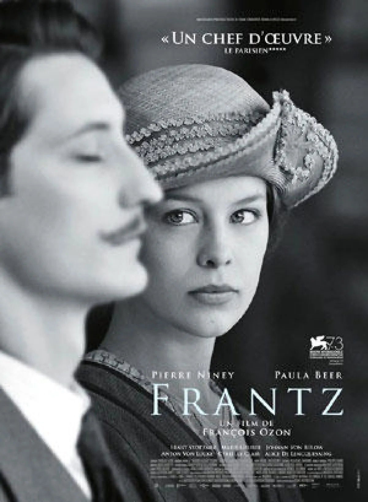 تعرض لجنة السينما في مؤسسة عبد الحميد شومان، الفيلم الفرنسي – الألماني "فرانتز"، للمخرج فرانسوا أوزون، الذي اشترك في كتابة السيناريو مع الكاتب السينمائي فيليب بيازو، وتم إنتاجه خلال العام الماضي 2016، حيث يعد هذا العمل السينمائي المميز، مزيجاً من أنواع الأفلام التاريخية والدرامية والحربية، ويستند في قصته كثيراً على الفيلم الأميركي الكلاسيكي "التهويدة المحطّمة" المنتج في العام 1932، للمخرج الألماني إرنست لوبيتش.