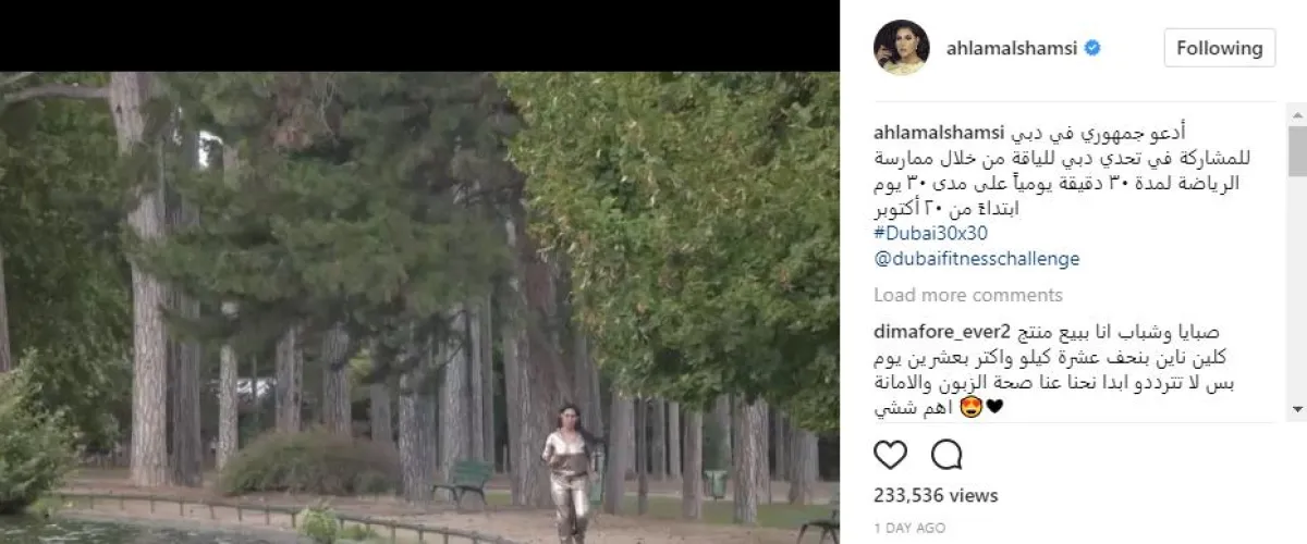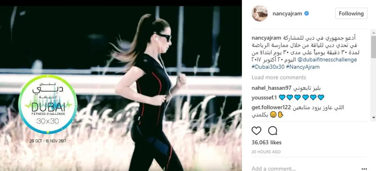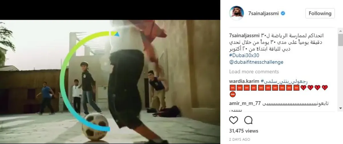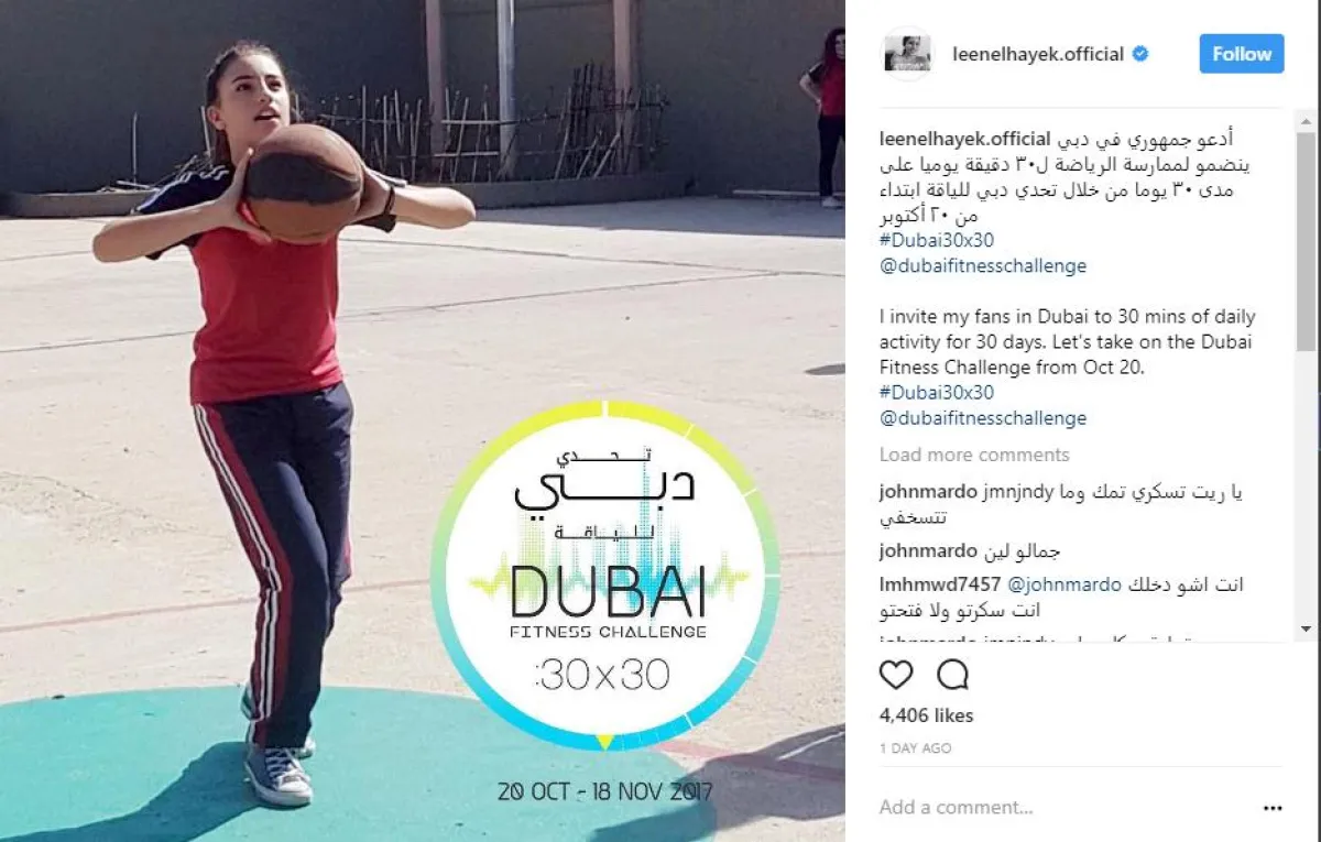ووحّد النجوم عبارة التحدي المقتبسة من رسالة الشيخ حمدان، فأطلقت أحلام وبلقيس وحلا الترك مقاطع فيديو لهن أثناء ممارسة الرياضة ، بينما ساهم كاظم الساهر و نانسي عجرم ولين حايك بصور تحمل شعار التحدي، وشارك الجسمي بالإعلان الترويجي للتحدي، وعلقوا جميعا بقولهم: أدعو جمهوري في دبي للمشاركة في تحدي دبي للياقة من خلال ممارسة الرياضة لمدة ٣٠ دقيقة يومياً على مدى ٣٠ يوماً، ابتداءً من ٢٠ أكتوبر"، وقد أرفقن قولهن بهاشتاق "Dubai30x30".