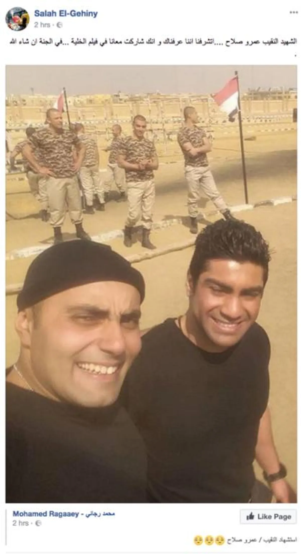 وعلق صلاح الجهيني ، مؤلف فيلم الخلية على صورة تجمعه بالفقيد قائلاً: الشهيد النقيب عمرو صلاح، تشرفنا أننا عرفناك، وأنك شاركت معانا في فيلم الخلية.. في الجنة إن شاء الله.