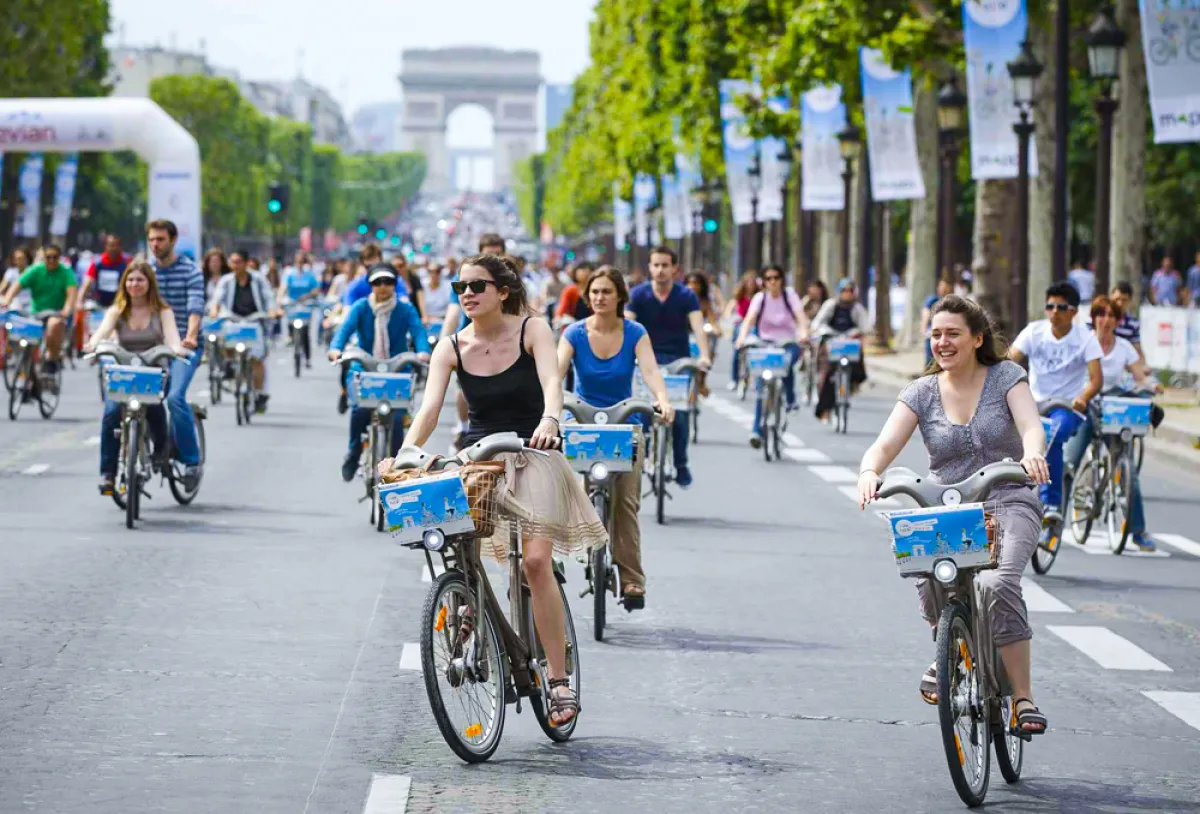 كان هدف تلك السياسة دفع سكان باريس إلى التخلي عن سياراتهم واستعمال وسائل النقل الجماعية. ثم شُرع في وضع برنامج لتشجيع سكان باريس على استخدام الدراجات. فبالإضافة إلى إنشاء مسالك خاصة بالدراجات، أطلقت خدمة لتأجير الدراجات بأسعار زهيدة، أطلقت عليها تسمية Velib، أي دراجات الحرية. وسرعان ما انتشرت محطات تأجيرها في مختلف الأحياء الباريسية، لتسهيل تنقلات الناس باستعمال الدراجات.