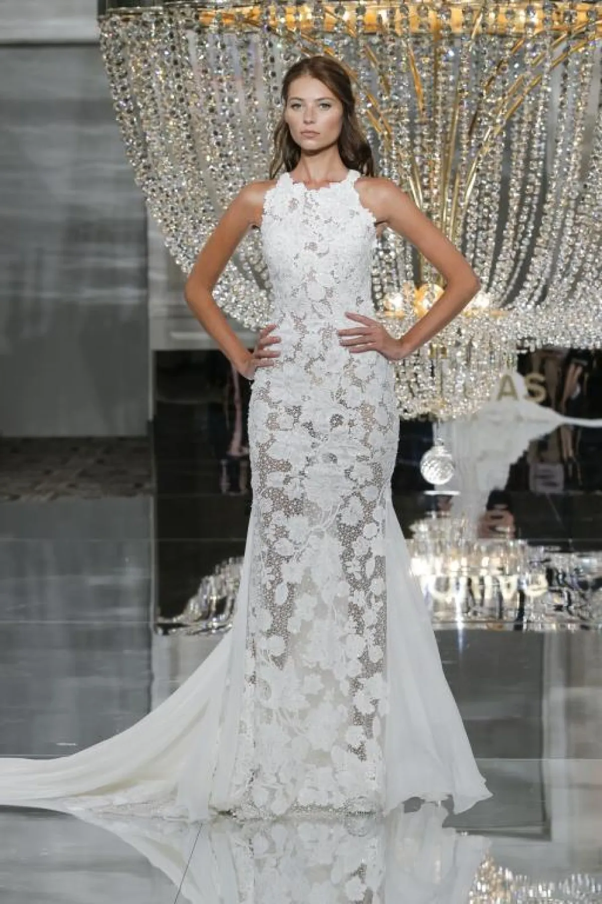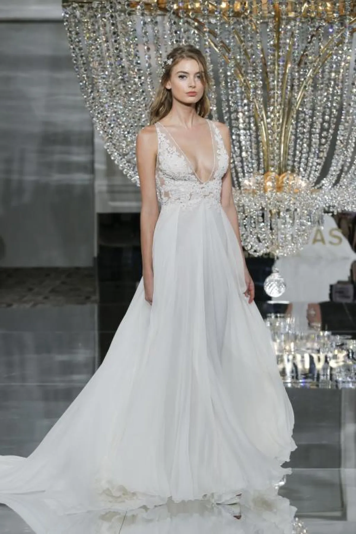 طغت الفساتين الناعمة والضيّقة على مجموعة فساتين زفاف عروس خريف 2018، وغابت الفساتين المنفوشة، واستُخدمت أقمشة الورود والدانتيل والكريستال في تصميم فساتين العروس.