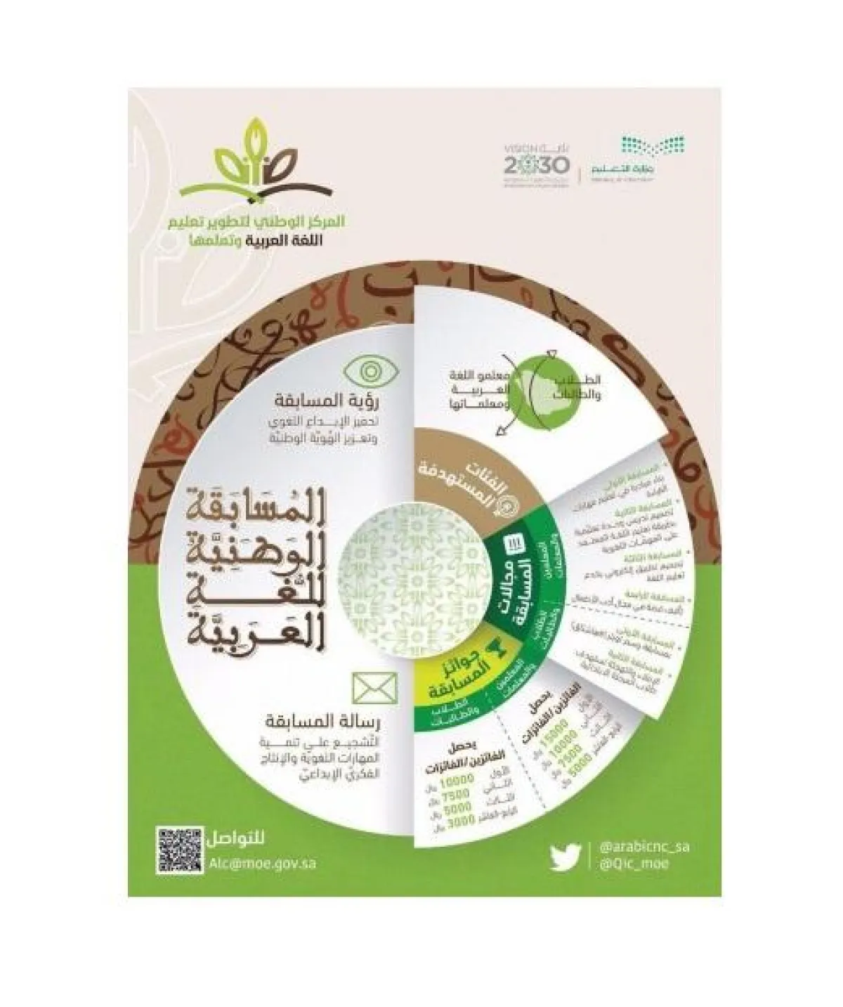فيما قال رئيس قسم اللغة العربية عبدالله السكاكر: إن الإدارة العامة تسعى إلى تحقيق مستوى مشرِّف في تصفيات المسابقة النهائية. ودعا معلمي ومعلمات اللغة العربية، والطلاب والطالبات إلى المشاركة بشكل فاعل في المسابقة.