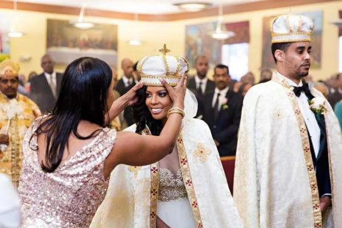 يذكر أن مراسيم زواج الأمير والسمراء تمت في الكنيسة الإثيوبية الأرثوذكسية بحضور 13 كاهنًا، وارتدى العروسان تيجان الكنيسة في حفل زفاف وصف بالملكي الأسطوري.