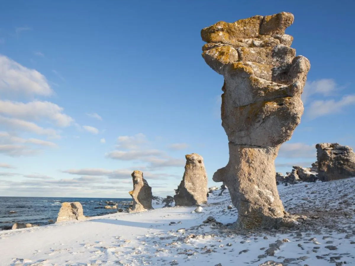 يُغطِّي الحجر الجيري هذه الجزيرة الواقعة في بحر البلطيق، حيث التشكيلات الصخرية تُجسِّد صورًا غريبة تدعو إلى تأمُّلها طويلًا.