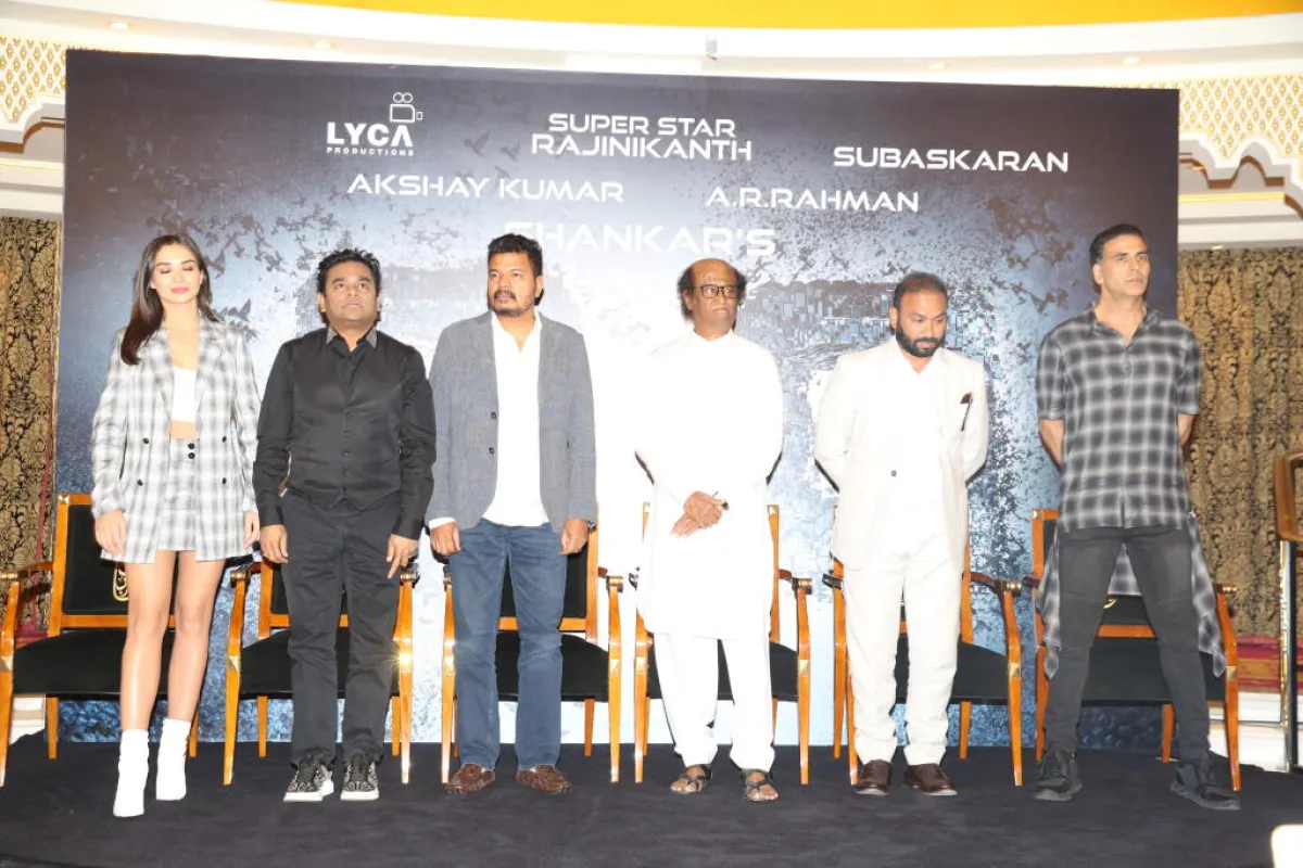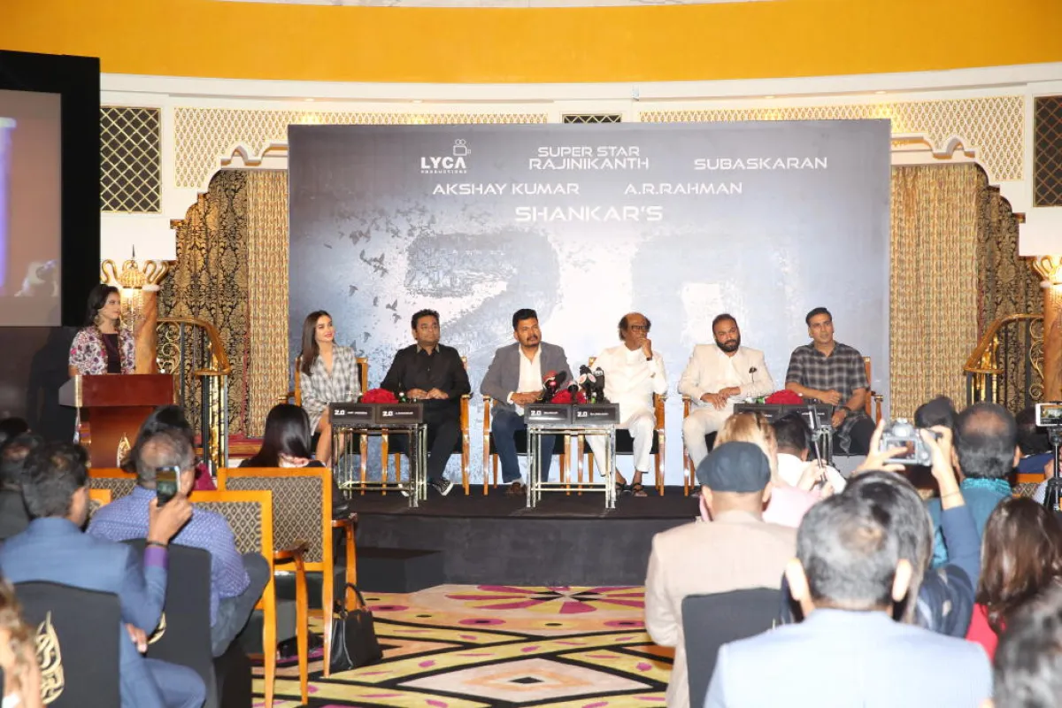 وقد وصل نجوم الفيلم إلى الفندق بطائرة هيلوكوبتر لحضور المؤتمر الصحفي، حيث كان بانتظارهم عدد من ممثلي وسائل الإعلام للترحيب ببعض من أكبر الأسماء في قطاع السينما والأفلام الهندي. وقدّم نجوم الفيلم خلال المؤتمر الصحفي لمحة عن تجاربهم الممتعة في صناعة هذا الفيلم والذي يجري تصويره بتقنية الأبعاد الثلاثة (3D). تبلغ التكلفة الإجمالية لإنتاج الفيلم 90 مليون دولار، وتساهم بعض أهم أسماء هوليوود مثل ماري فوجت في تصميم الملابس، إضافة إلى كيني بيتس في إدارة المشاهد الحافلة بالإثارة والأكشن. ومن المتوقع أن يطلق فيلم "2.0" حقبة جديدة في تاريخ السينما الهندية.