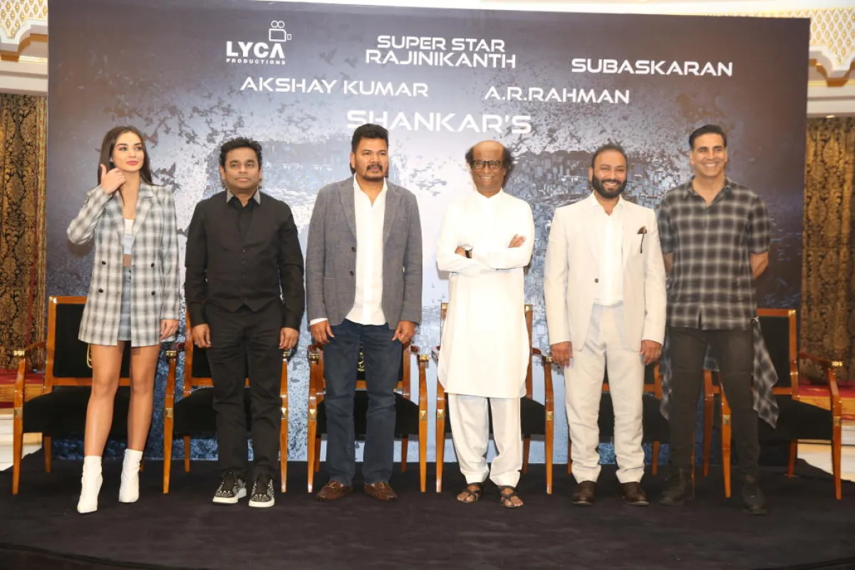 انضم نجوم السينما الهندية راجينيكانث، وأكشاي كومار Akshay Kumar وإيمي جاكسون Amy Jackson إلى الملحن المعروف إيه آر رحمان والمنتج أليراجاه سوباسكاران والمخرج إس شانكار في مؤتمر صحفي في فندق برج العرب احتفاءً بإطلاق الموسيقى التصويرية لفيلم "2.0" الذي يعد أضخم أفلام السينما الهندية من ناحية الميزانية.