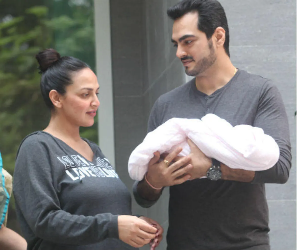 إيشا ديول وزوجها أمام المستشفى