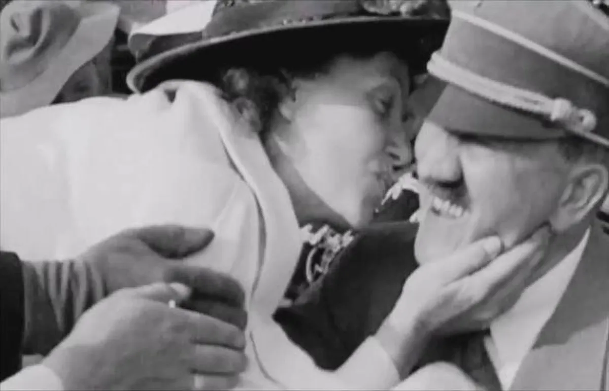 واختلست السيدة الأمريكية من ولاية كاليفورنيا، كارلا دي فريز، قبلة سريعة من هتلر بعدما أمسكت وجهه بيديها، خلال دورة الألعاب الأولمبية في برلين، عام 1936، بينما كان هو يحاول التهرب منها.