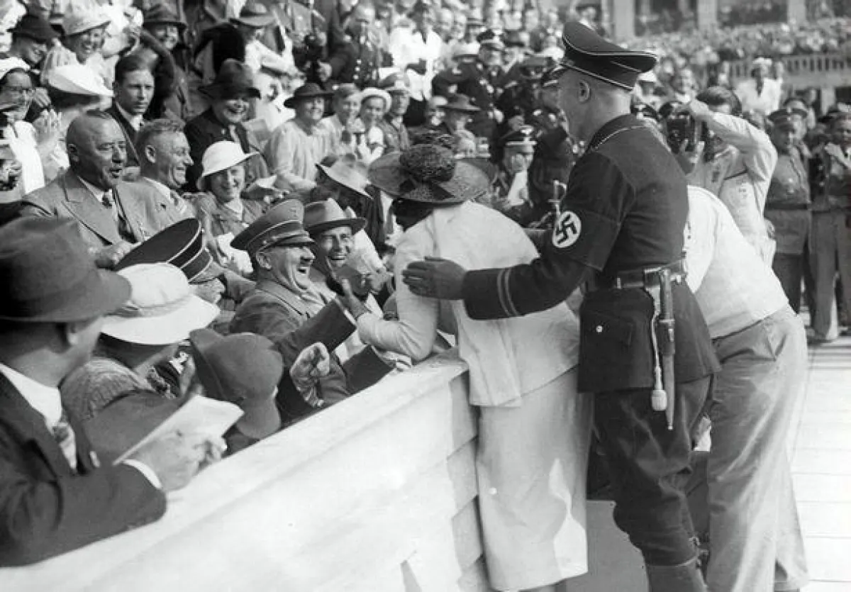 ظهر للمرة الأولى منذ 81 عاماً مقطع فيديو مثير لسيدة أمريكية تمكنت من الوصول إلى أدولف هتلر Adolf Hitler في دورة الألعاب الأولمبية، رغم الحراسة المشددة ، وتمكّنت من تقبيله ، في حادثةٍ دفعت الزعيم النازي إلى عزل عددٍ كبير من حراسه الأمنيين ، وخفض راتب عددٍ آخر.