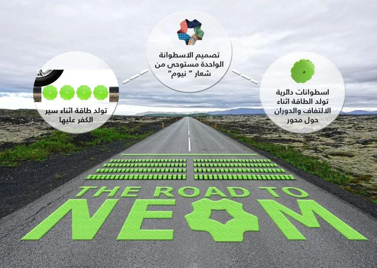 وتتضمن فكرة الابتكار عبور السيارات على أسطوانات بلاستيكية، ترتفع عن الأرض 0.50 سم، يتم تثبيتها على الطرقات التي تؤدي إلى مداخل مدينة "نيوم"، والاستفادة من احتكاك "الكفرات" بالإسفلت في توليد الطاقة.