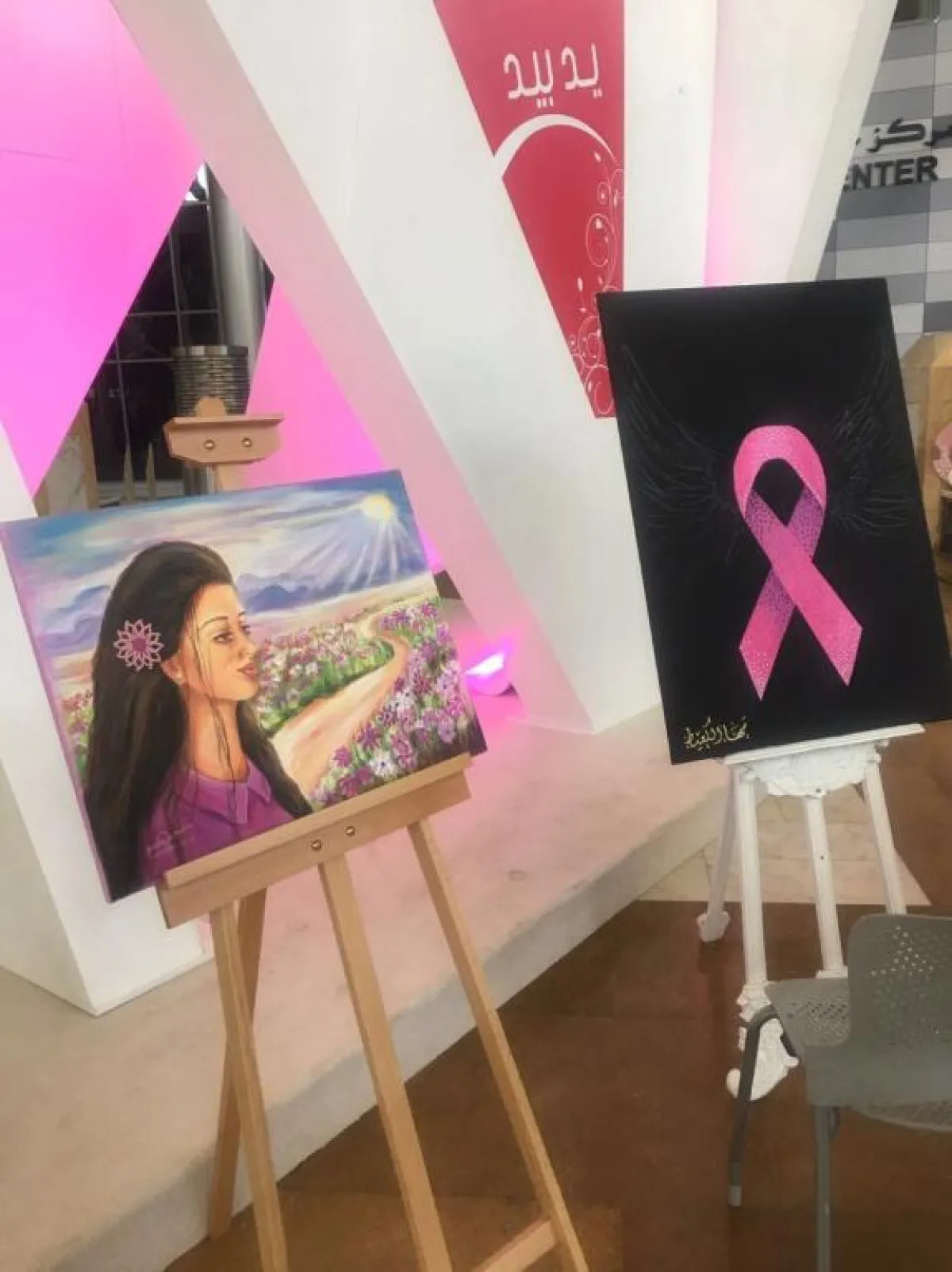 فيما حرصت العديد من الأقسام والأندية على المشاركة بهذا المعرض لتسليط الضوء على أهم وأحدث المستجدات التي تنم عن الإصابة بسرطان الثدي، والذي أصبحت نسبة الشفاء منه تفوق الـ90%، إذ شاركت الكليات الصحية مع العلمية والإنسانية والعديد من الأندية الرياضية، بالإضافة إلى مجموعة من الأطباء، بجلسات حوارية تثقيفية عامة، كما اشتمل المعرض على مادة مرئية معروضة خاصة بسرطان الثدي، وشرح مفصل عن أعراض ومراحل وطرق العلاج خلال مطويات تثقيفية طبية، وبعض الأفكار المبسطة بشكل جرافيكي عن الإصابة بهذا المرض، أطلعتنا عليها وكيلة كلية الطب للشؤون الأكاديمية، إذ تم التركيز في حديثها على دور العلاج الجراحي والترميمي وطرق تسكين الألم بعد الجراحة، وأجمل ما زين تلك الزاوية لوحات فنية معبرة تبث روح الأمل والتفاؤل.