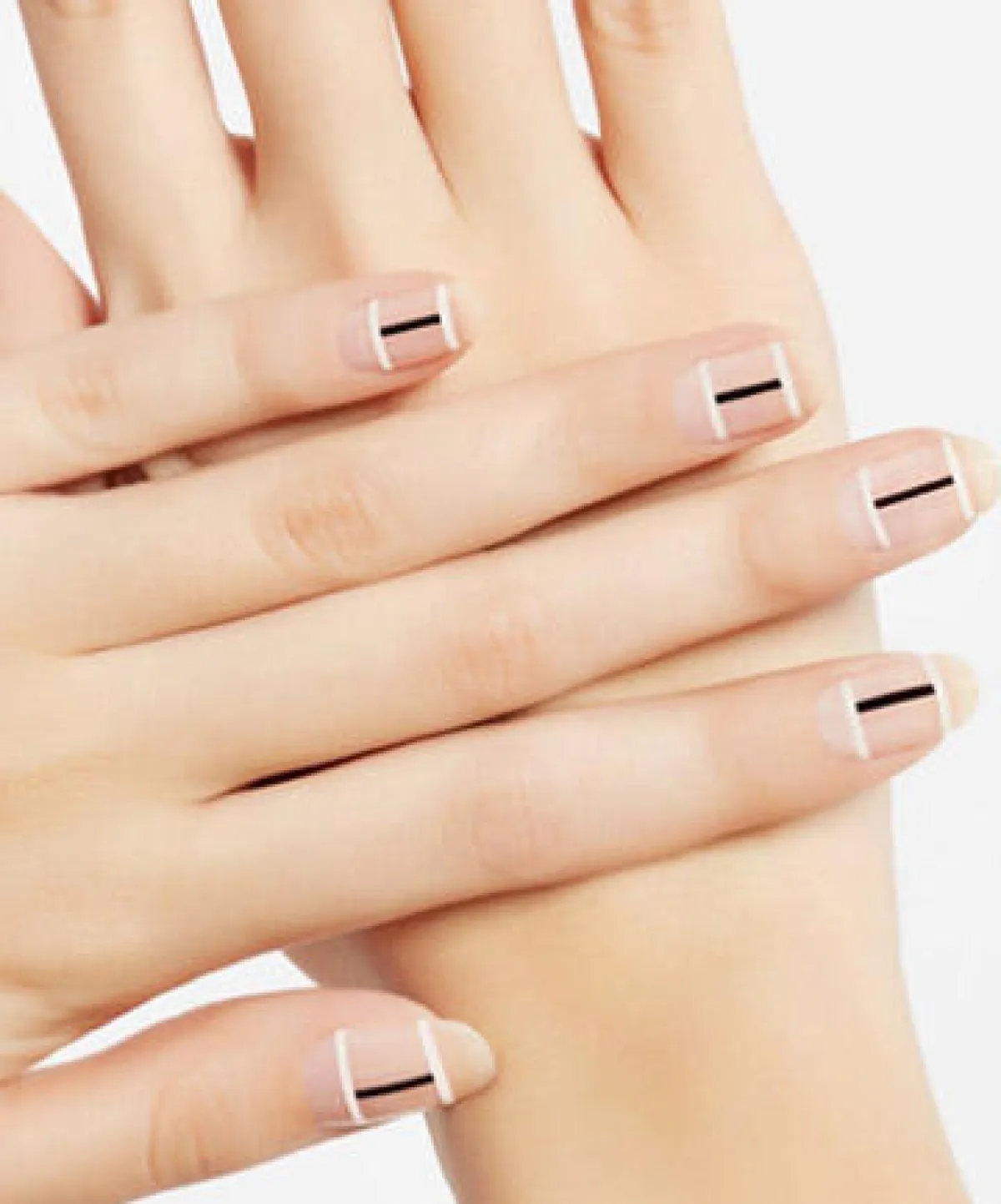 1. الأظافر ذات الأشكال البسيطة: هي شكل من الأشكال الهندسية البسيطة الجذابة، كل ما عليك فعله للقيام بها في منزلك، هو تطبيق الطلاء الشفاف على أظافرك، ثم وضع خطين عرضيين من اللون الأبيض في مقدمة أظافرك ومؤخرتها، ثم وضع خط أسود طولي بينهما.