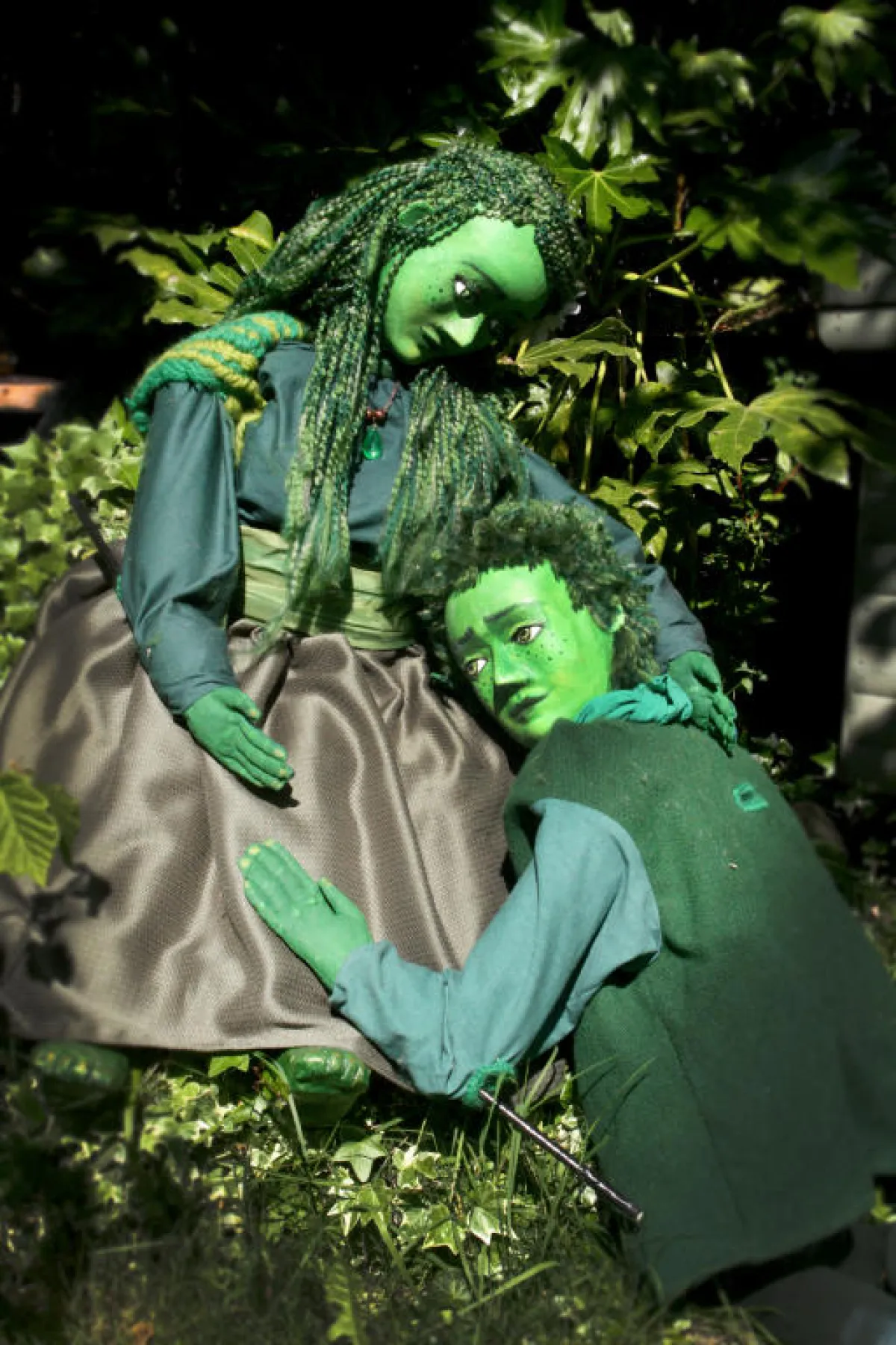 صبي وفتاة بشرتهما باللون الأخضر