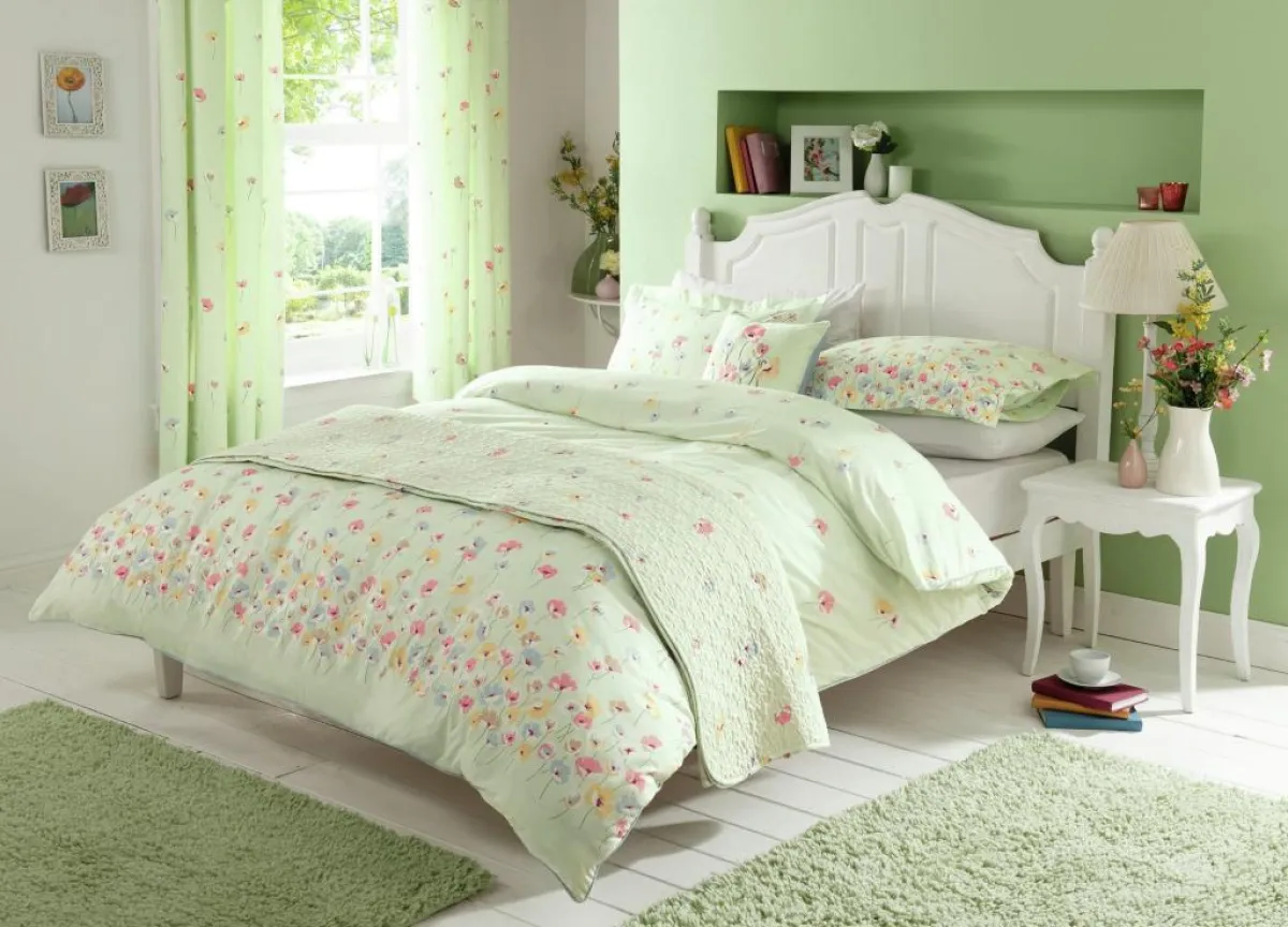 عند الرغبة في أن تَحلَّ الأغطية المنقوشة على السرير، فمن الأفضل اختيار هذه النقوش ناعمةً، على أن تكون صغيرة أو متوسِّطة