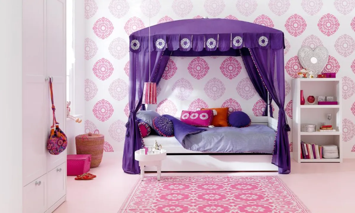 | إنَّ الألوان هي مفتاح النجاح دائمًا. لذا، يُفضَّل اختيار المُضيئة من بينها، مثل: البرتقالي والأصفر والوردي والأخضر والأرجواني، مع تجنُّب انتقاء أكثر من 3 ألوان في الغرفة.