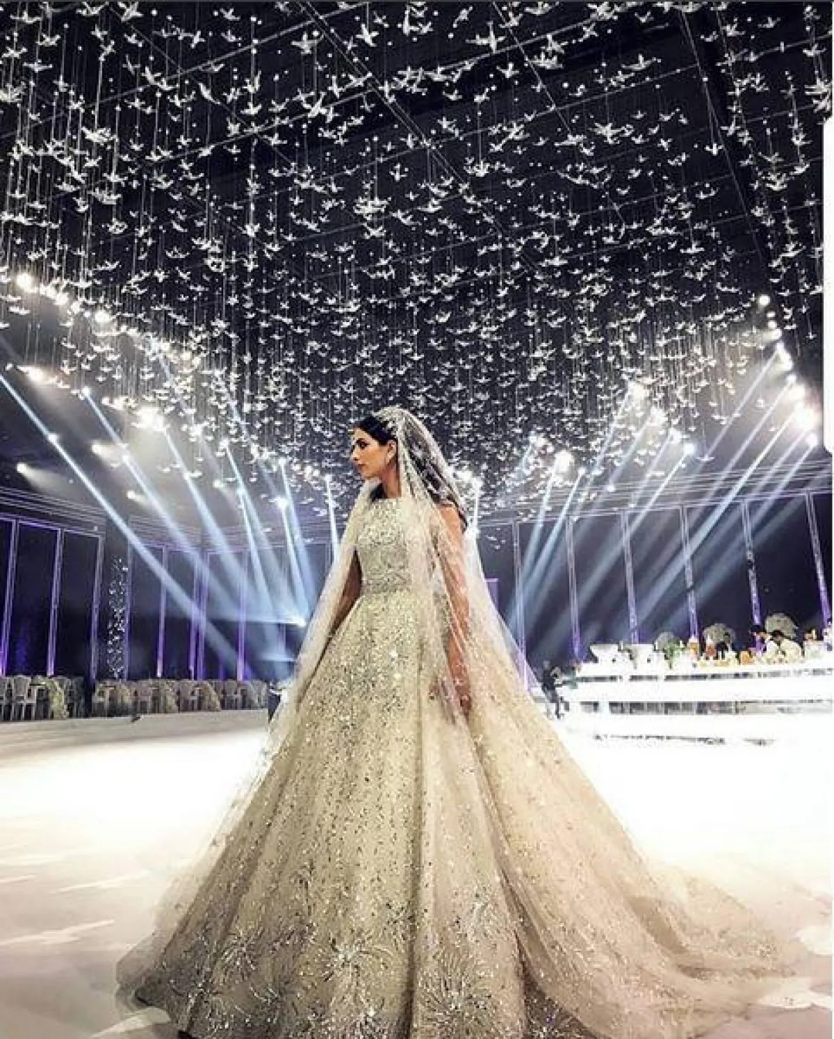أشعلت العروس اللبنانية ياسمين ملوح الإنترنت بصور فستانها الفاخر من تصميم زهير مراد، وحفل زفافها الأسطوري من تنظيم "بول نصر".