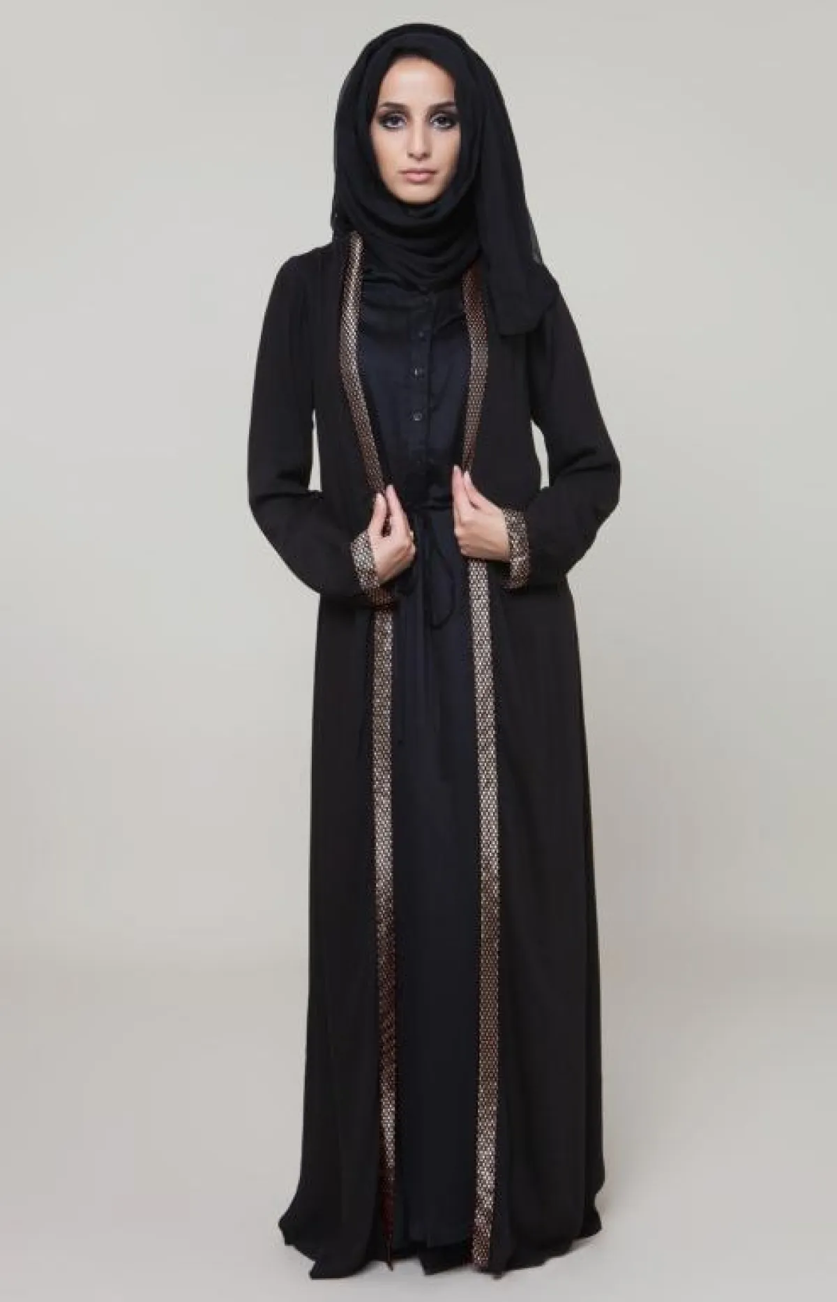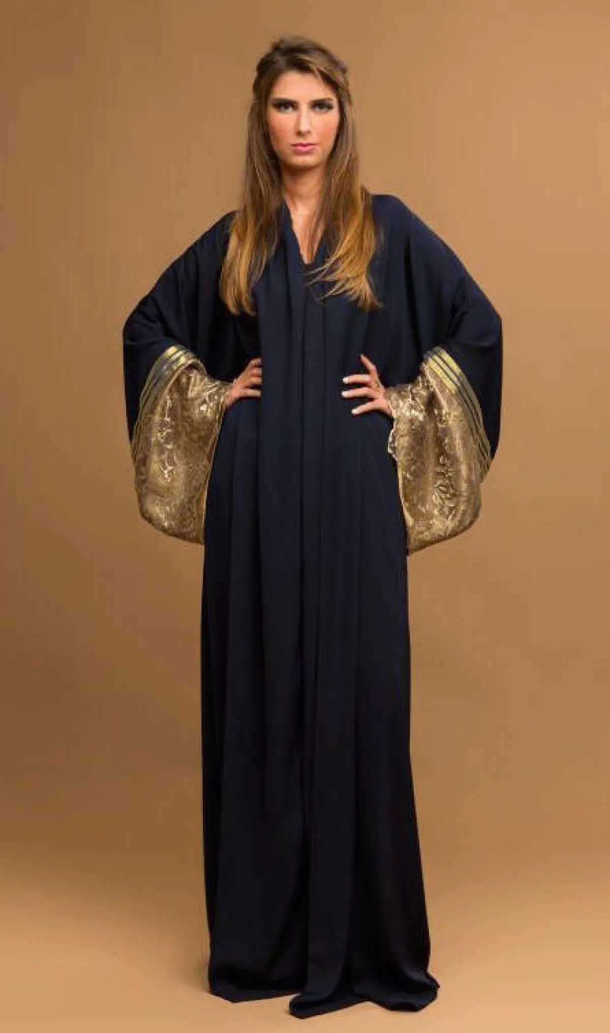 مزيج اللونين الأسود والذهبي هو من الأجمل والأكثر توافقًا في الموضة، كما أنه يوحي بالكثير من الفخامة والرقي، ولهذا فإنّ عددًا كبيرًا من مصممي الأزياء بمن فيهم مصمّمو العبايات والجلابيات أيضًا، يستخدمون هذا المزيج في مختلف تصاميمهم الرسمية والكاجوال أيضًا.