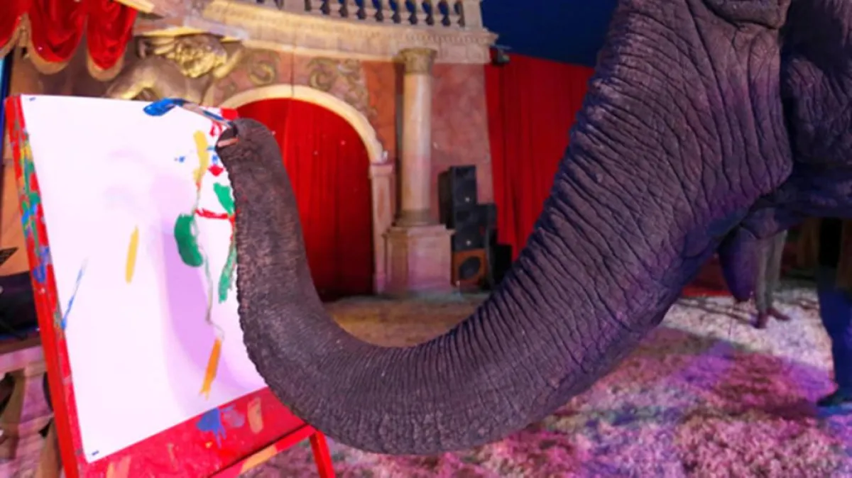 وكان السيرك المجري المتجول قد باع ثلاث لوحات «كانفاس تجريدية» صنعتها أنثى الفيل«ساندرا» البالغة من العمر 42 عاماً، والتي كانت تحب الإمساك بالفرشاة وتجيد الرسم بها.