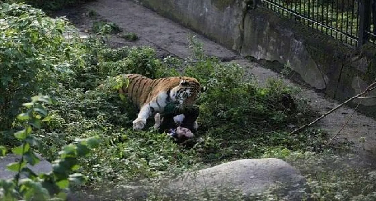 وحسب صحيفة «الديلي ميل»، تركت الحارسة باب قفص النمر السيبيري مفتوحاً أثناء جلب الطعام له، فخرج بسرعة من مكانه، وانقضّ عليها، محاولاً افتراسها.