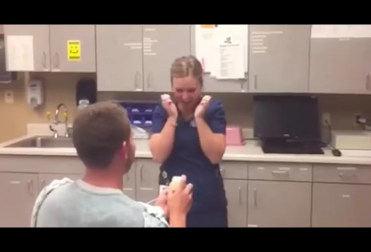 وبحسب الفيديو، الذي نشرته صحيفة "ديلي ميل" البريطانية، وانتشر في مواقع التواصل الاجتماعي فقد ظهر مدرب اللياقة البدنية جوزيف إلكينز، من تاتشر في أريزونا، وهو يستلقي على سرير داخل غرفة الطوارئ في أحد المستشفيات، ثم تم استدعاء صديقته الممرضة شانون بينغهام، التي أصيبت بالصدمة بعد رؤيتها حبيبها مريضاً، لكنَّه فاجأها بطلب يديها أمام صديقاتها الممرضات.