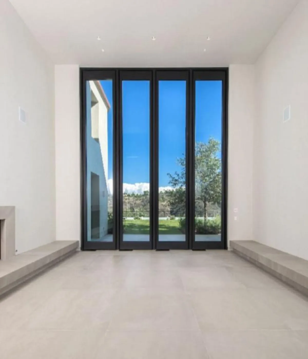 تبلغ مساحة العقار 836 مترًا مُربَّعًا، وتتكشَّف دواخله عن ستِّ غرف نوم وثمانية حمَّامات، فضلًا عن مساحات رحبة ملوَّنة بالأبيض، ومُحمَّلة بنقاوته. وللقصر مساحة خارجيَّة تتضمَّن حوض سباحة مستطيلًا يطلُّ على التلال القريبة. كما تتراءى مناظر طبيعيَّة خلَّابة للداخل، من خلال أبواب الزجاج والنوافذ الضخمة التي تُفتح بطريقة أوتوماتيكية.