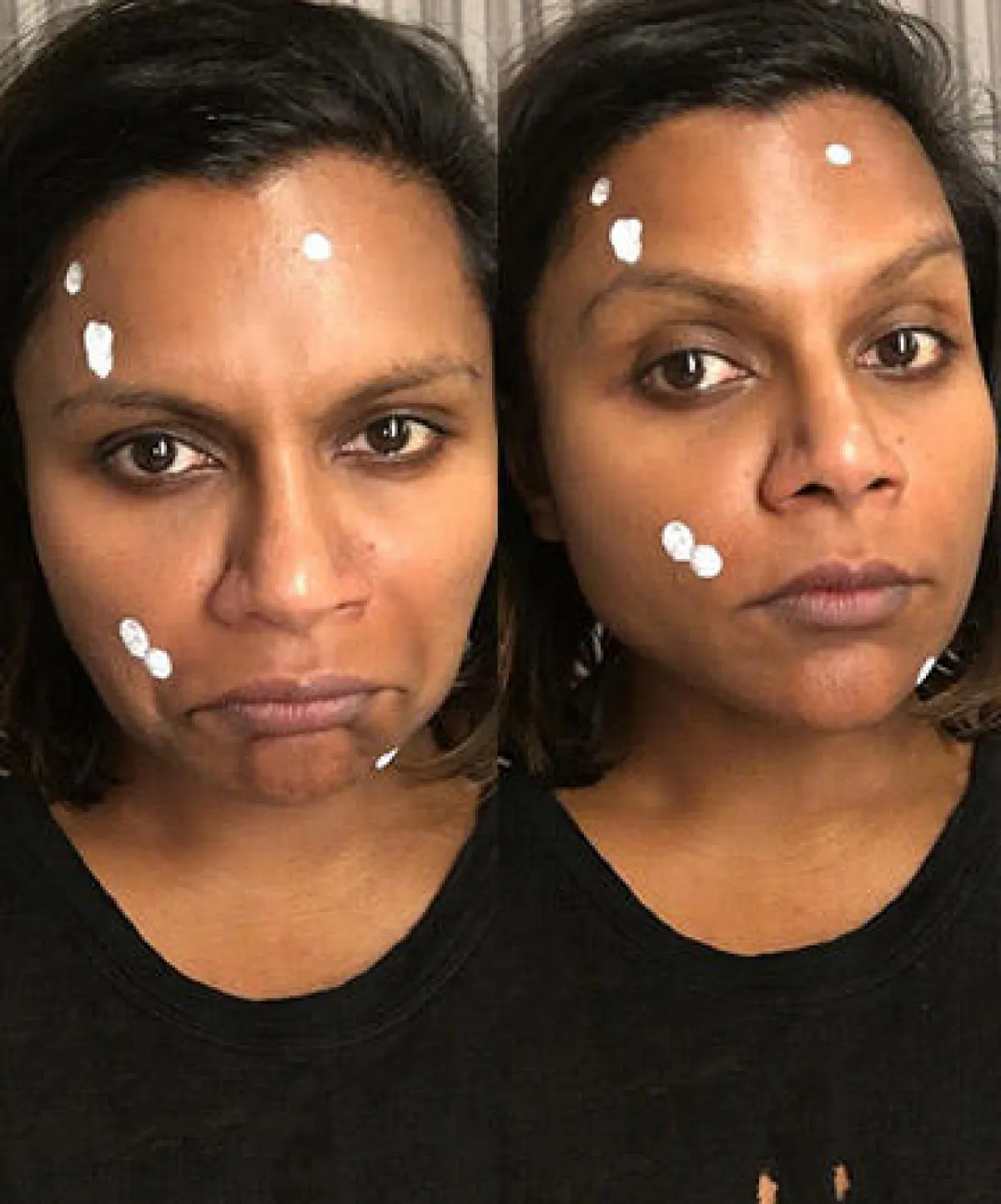 -ميندي كالينغ Mindy Kaling : لا تخشى أن تنشر سيلفي لها مع بثرة في وجهها، وتنشرها عبر مواقع التواصل الاجتماعي. تصرّح هذه النجمة أنها استخدمت المستحضرات التي تقضي على البكتيريا المسببة لحب الشباب، العميقة تحت سطح الجلد، كما كانت تقشّر وجهها لإزالة الرؤوس السوداء.