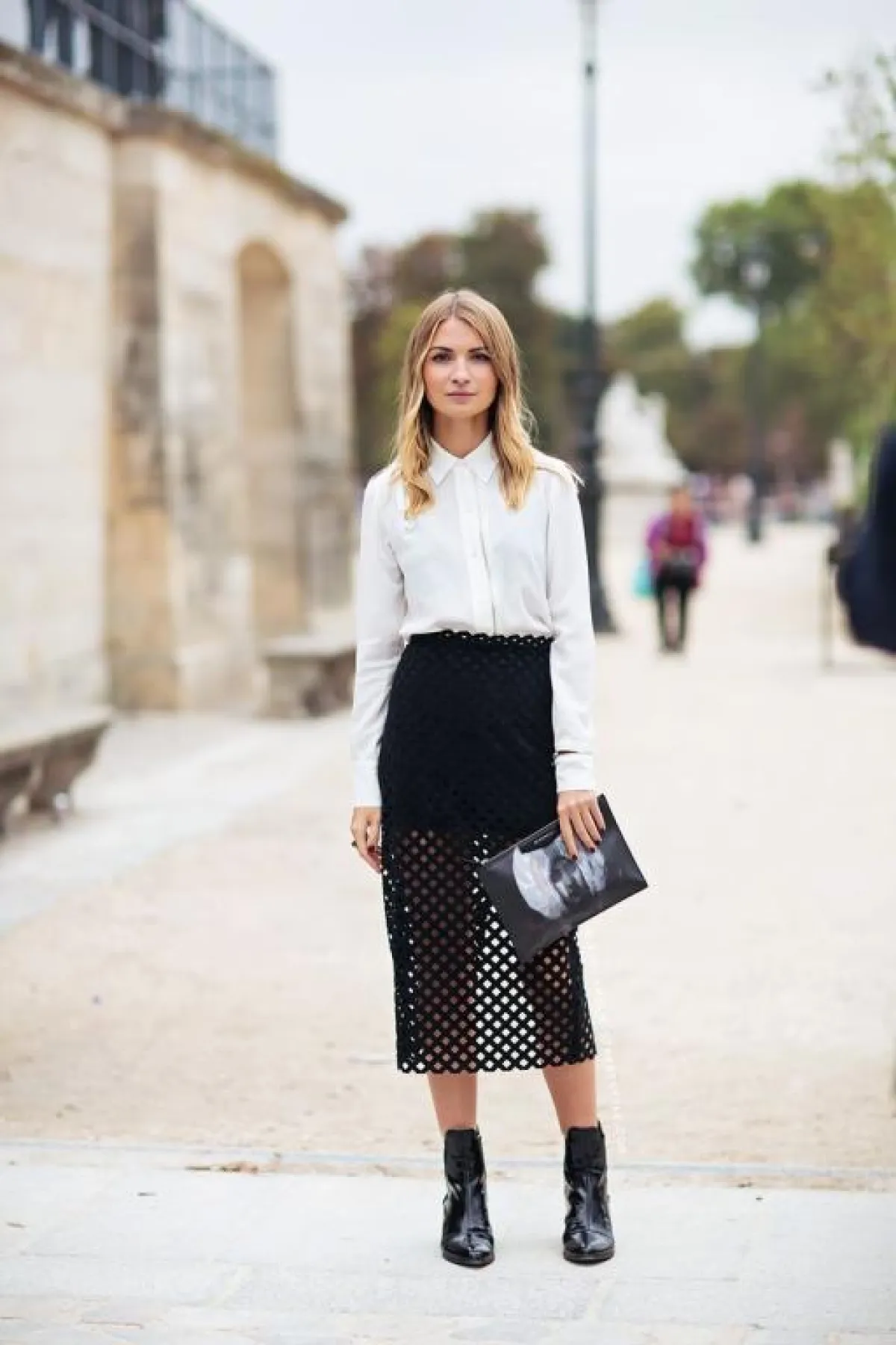 كما من الممكن أن تختاري القميص الأبيض وتنسّقيه مع تنورة ميدي باللون الأسود على سبيل المثال، وبذلك تحصلين على اطلالة مثالية للعمل راقية وأنيقة، وإن اخترتِ القميص نفسه لكن مع تنورة بلون معدني كالفضي والذهبي، فبذلك ستحصلين على اطلالة مسائية لافتة.