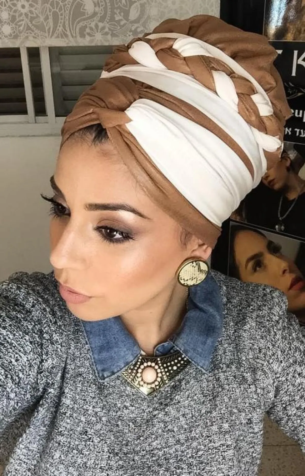 -الاكسسوارات الكبيرة: إنها موضة الاكسسوارات الكبيرة على الرأس ولا سيّما الأوشحة الضخمة. اختاري وشاحًا جريئًا بنقشته. ارفعي شعركِ على شكل كعكة عالية ثم اطوي الوشاح بشكل عريض يغطي الرأس كلّه من الأمام.
