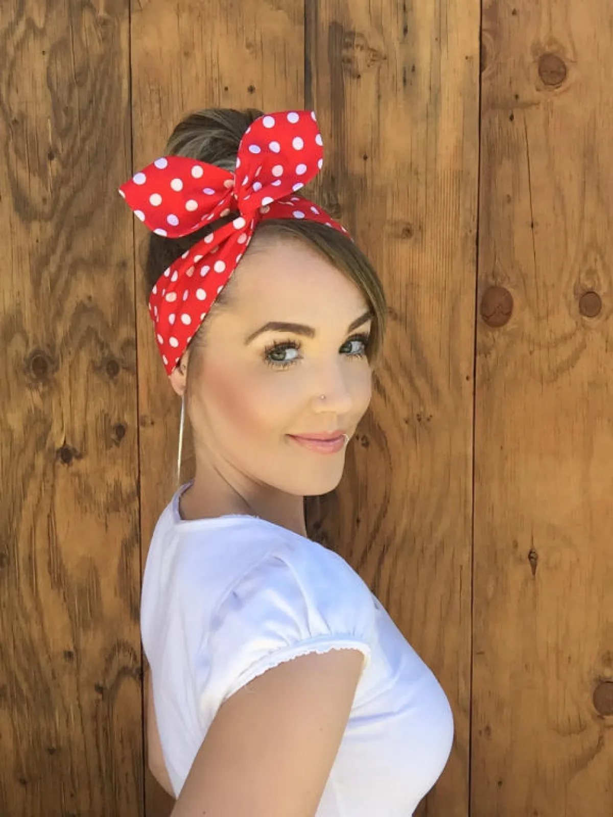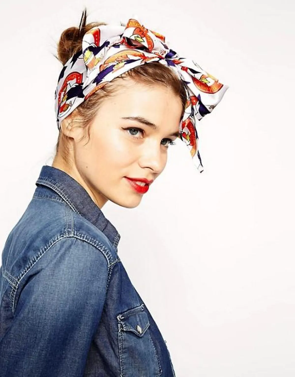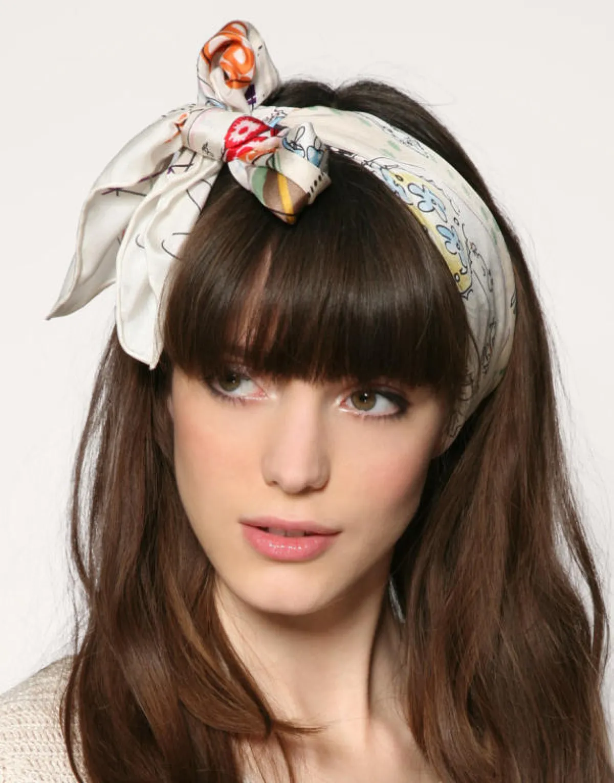 -Vintage: هذه التسريحة سهلة ومثالية للأيام الماطرة. اثني الوشاح الخاص بكِ بحسب تسريحة شعرك، مع نهاية مدببة نحو الخلف. لفّي الأطراف وعودي إلى الأمام لتثبيت الوشاح عند الرقبة.