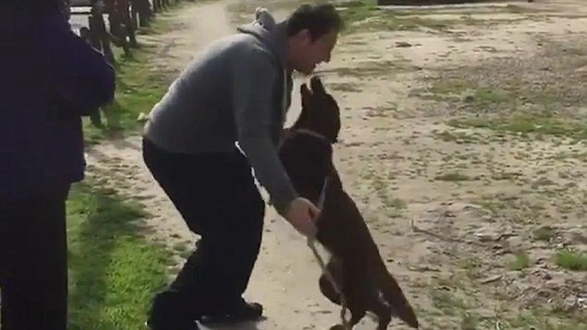 ويظهر الكلب وهو في حالة فرحة هستيرية بعدما رأى مالكه القديم، وقفز عدة مرات لاحتضانه وقيامه بحركات غريبة ومؤثرة تعبر عن الفرحة الكبيرة التي يعيشها، وكأنه لم يصدق بأنه رأى صاحبه مرة أخرى.